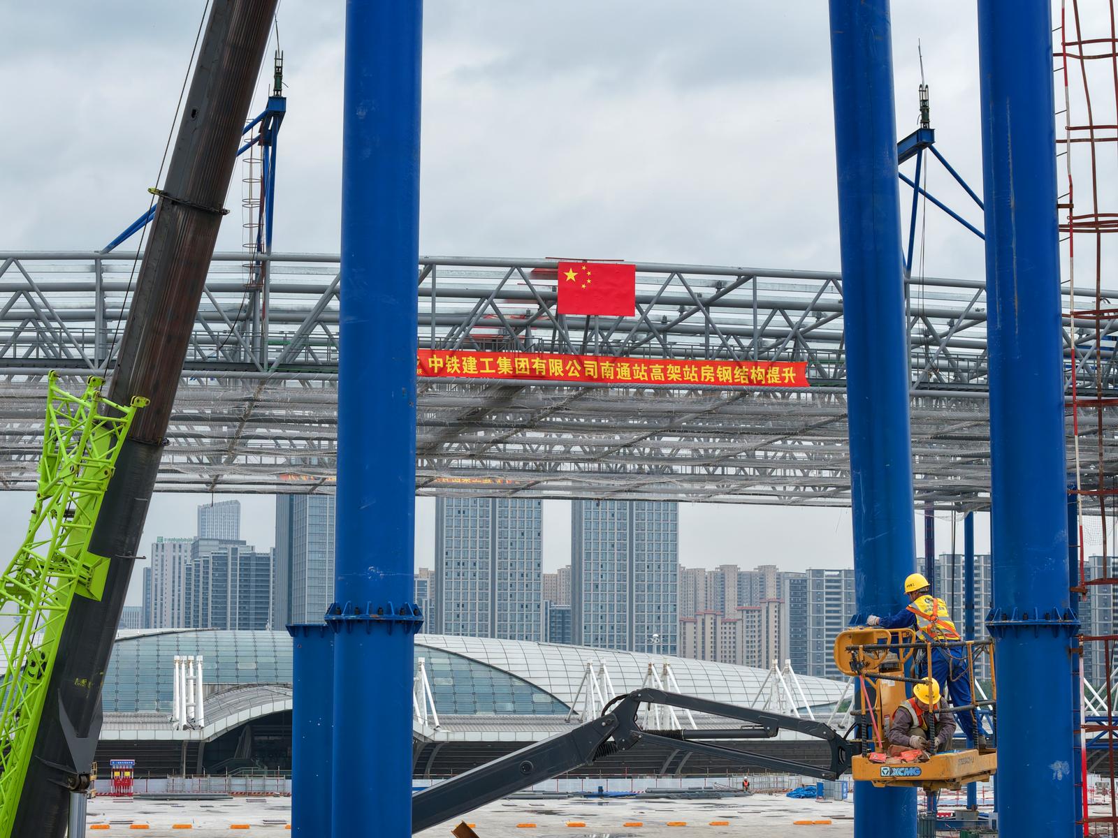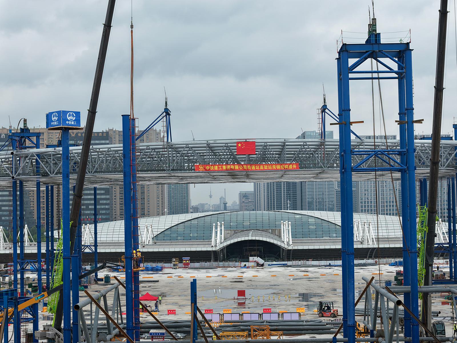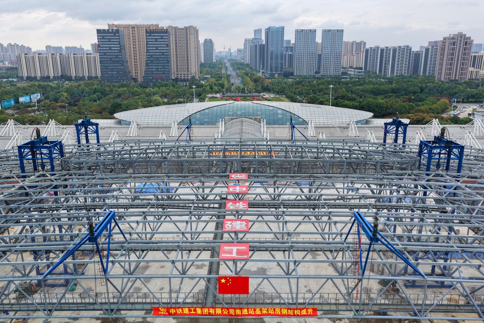 据介绍,新建南通站站房及相关工程是沪渝蓉高铁的重要组成部分,建成后站场总规模达3场9台20线,作为区域重要交通枢纽升级工程,该项目承载着完善长三角铁路网布局、助力“1小时经济圈”构建的重要使命。