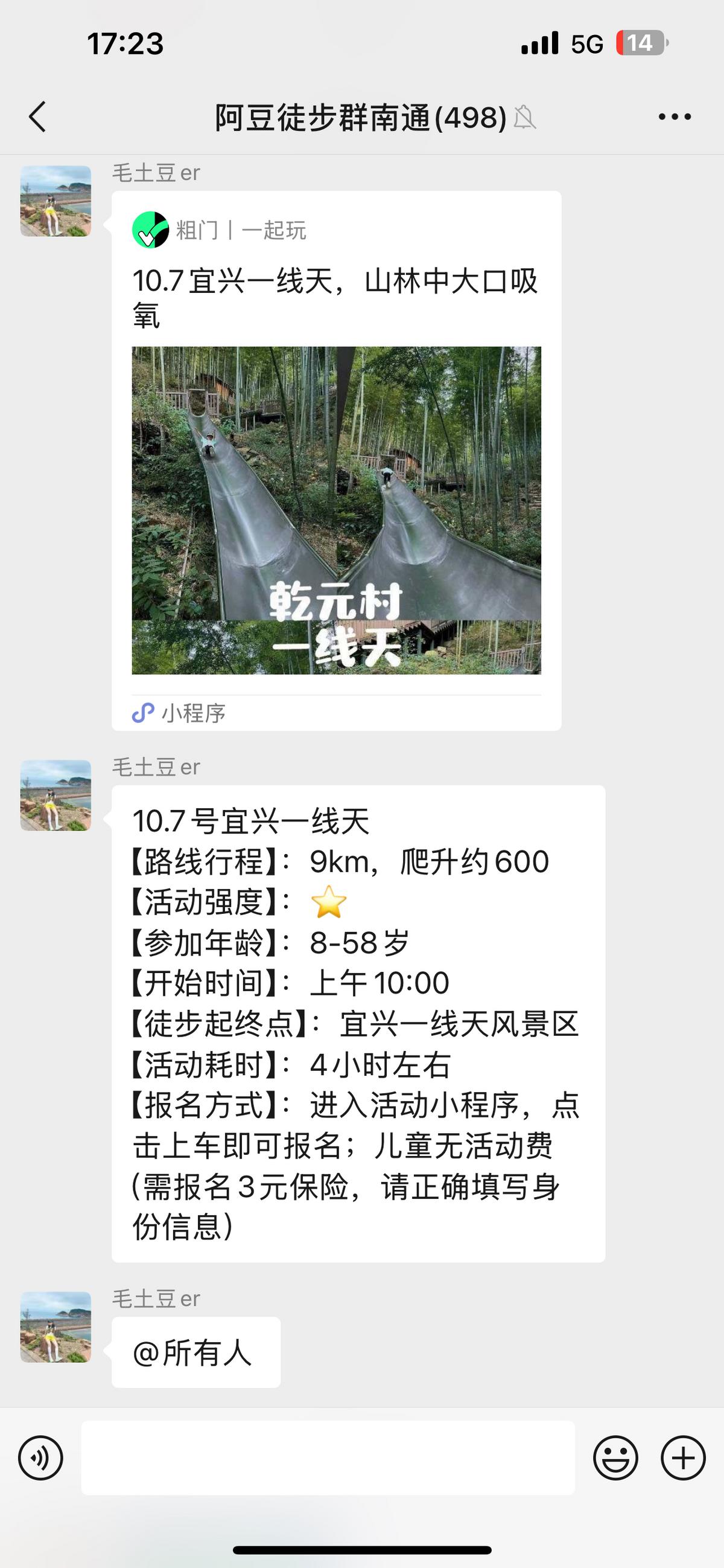 金秋时节,各类“上山下海”的新玩法在南通持续涌现:五山徒步摘野果“寻秋”、启东吃海鲜“品秋”、如东古村落“晒秋”……这两天,“阿豆徒步社群”创始人毛土豆刚把周末“宜兴廿三湾徒步”的招募信息挂上“粗门”小程序,不到6小时,80个名额一抢而空,社群内同步上线的宁波栲栳古道、浙江莫干山等四条短途山野路线也反响热烈。