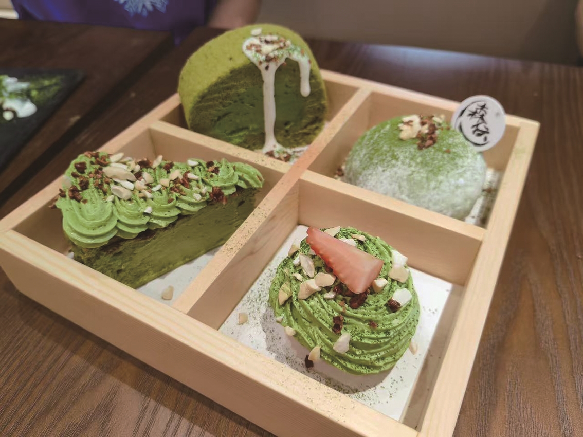 在这里,从抹茶千层到抹茶草莓大福,从独特的四宫甜品到舒芙蕾套餐及抹茶冰淇淋,看似同一色系,但每一口都尽显各自灵魂,入口皆是欢喜。