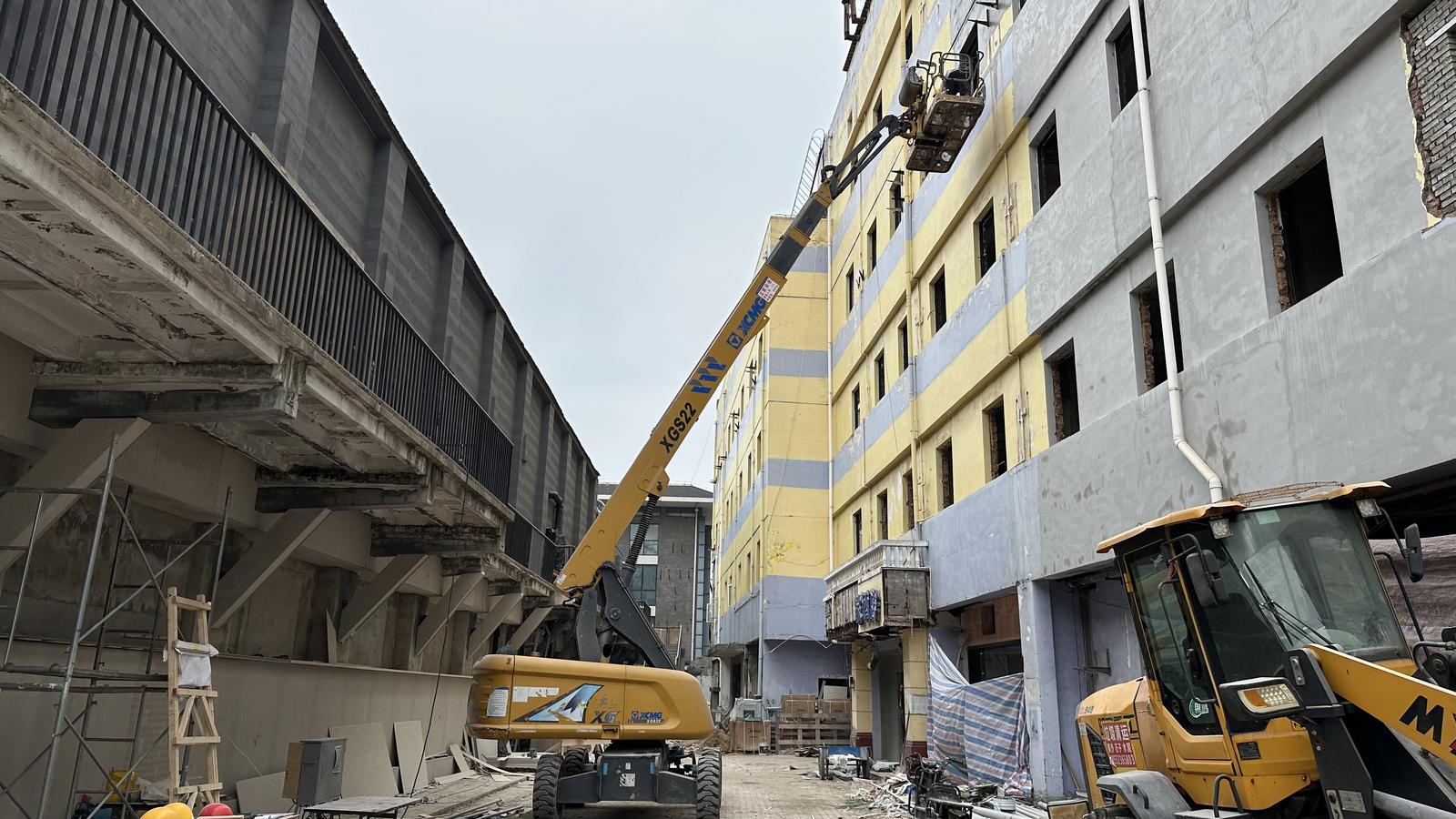 韬奋印刷厂工人正在改造老厂房外立面