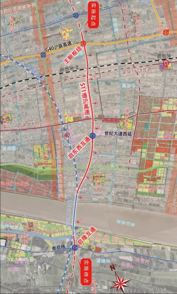 S11通沪高速贯穿启东中部,与既有的G40沪陕高速交会,未来随着通沪高速北段的建设及与S7沪崇高速联通后,将在启东境内形成了高效的“黄金十字”高速骨架,彻底改变路网结构,使启东从一个通道的端点,转变为区域路网中一个不可或缺的节点,将推动启东完成从区域交通“终点站”向双向赋能“桥头堡”的战略跃升,从单一的通行端点,彻底转变为承接上海辐射、传导至苏北的“前沿阵地”。