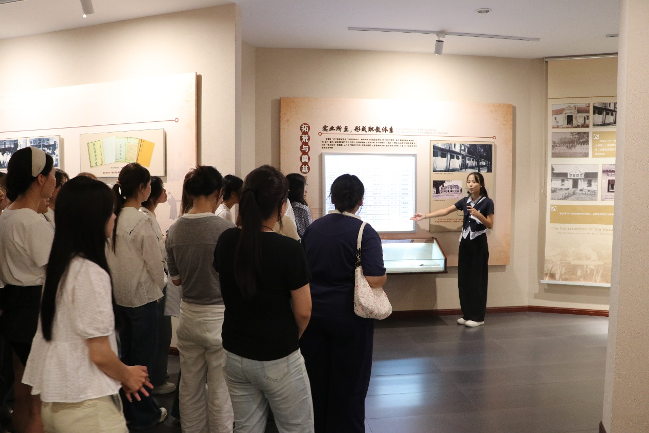 800余名2025级新生走进校文博馆,在讲解员的引导下,亲历了一场沉浸式的校史溯源之旅。新生们从陈列馆系统而丰富的展示中,感知张謇作为“我国近代职业教育拓荒者和奠基人”的远见卓识,理解他“父教育而母实业”“学必期于用,用必适于地”的职教理念如何深植于学校创办与发展的基因之中,体会几代工院人追随先贤足迹、践行职教使命的坎坷历程与共同追求。这场身临其境的体验,不仅让新生们真切触摸到校本文化的深厚根脉与张謇兴办实业、发展教育、服务乡里的艰辛与伟大,也为他们了解职业教育本源、传承先贤精神播下深厚的情感种子。