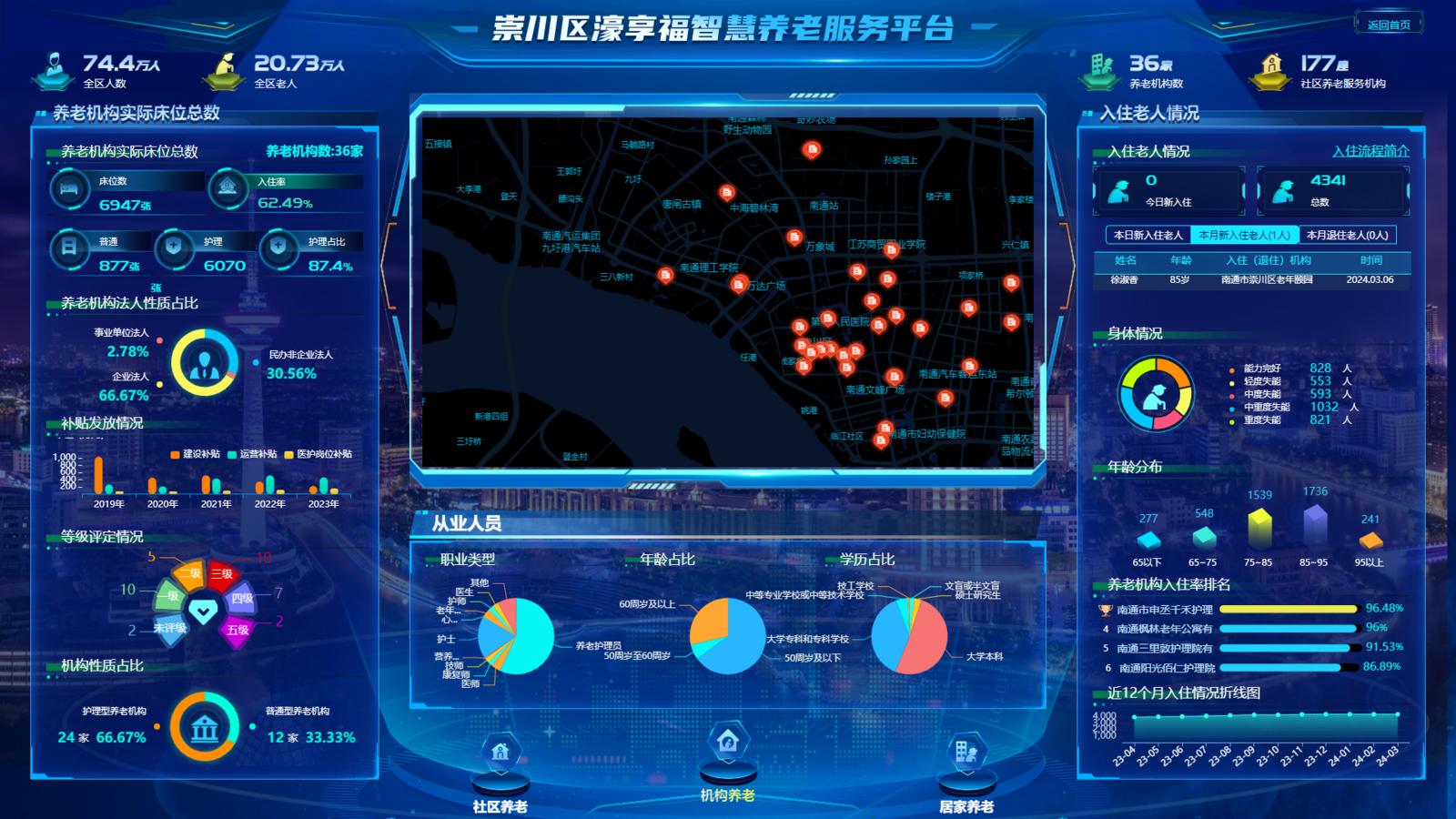 近年来,崇川区不断加快“智慧养老”建设步伐,累计投入费用1500万元,依托互联网、大数据、人工智能等信息技术,先后三次升级改造,搭建了高效便捷的“濠享福”智慧养老服务平台,推动实现养老服务便捷化、智能化、品牌化。