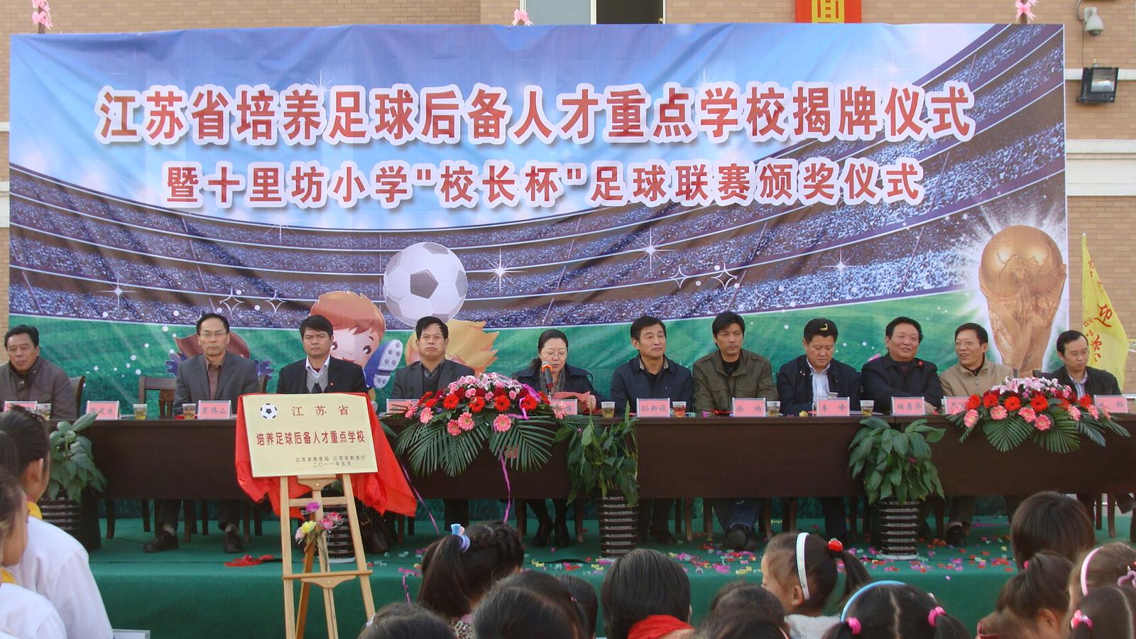 从1986年的“自掏腰包买足球,在泥地上踢足球”,到现如今场地设施完备、青训计划科学,全校半数以上师生常态化参加足球运动,十里坊小学“四十年磨一剑”,在足球之路上繁花盛开、硕果累累。2011年,学校获评“江苏省培养足球后备人才重点学校”;2015年,荣获首批全国青少年校园足球特色学校。校足球队先后获得2012年全国“侨心杯”青少年足球邀请赛季军,2013年江苏省“省长杯”校园足球联赛冠军,2016年江苏省“省长杯”校园足球联赛冠军,2017年江苏省青少年足球锦标赛冠军,2018年江苏省第十九届运动会足球比赛冠军,这也是南通历史上首个省运会足球冠军。