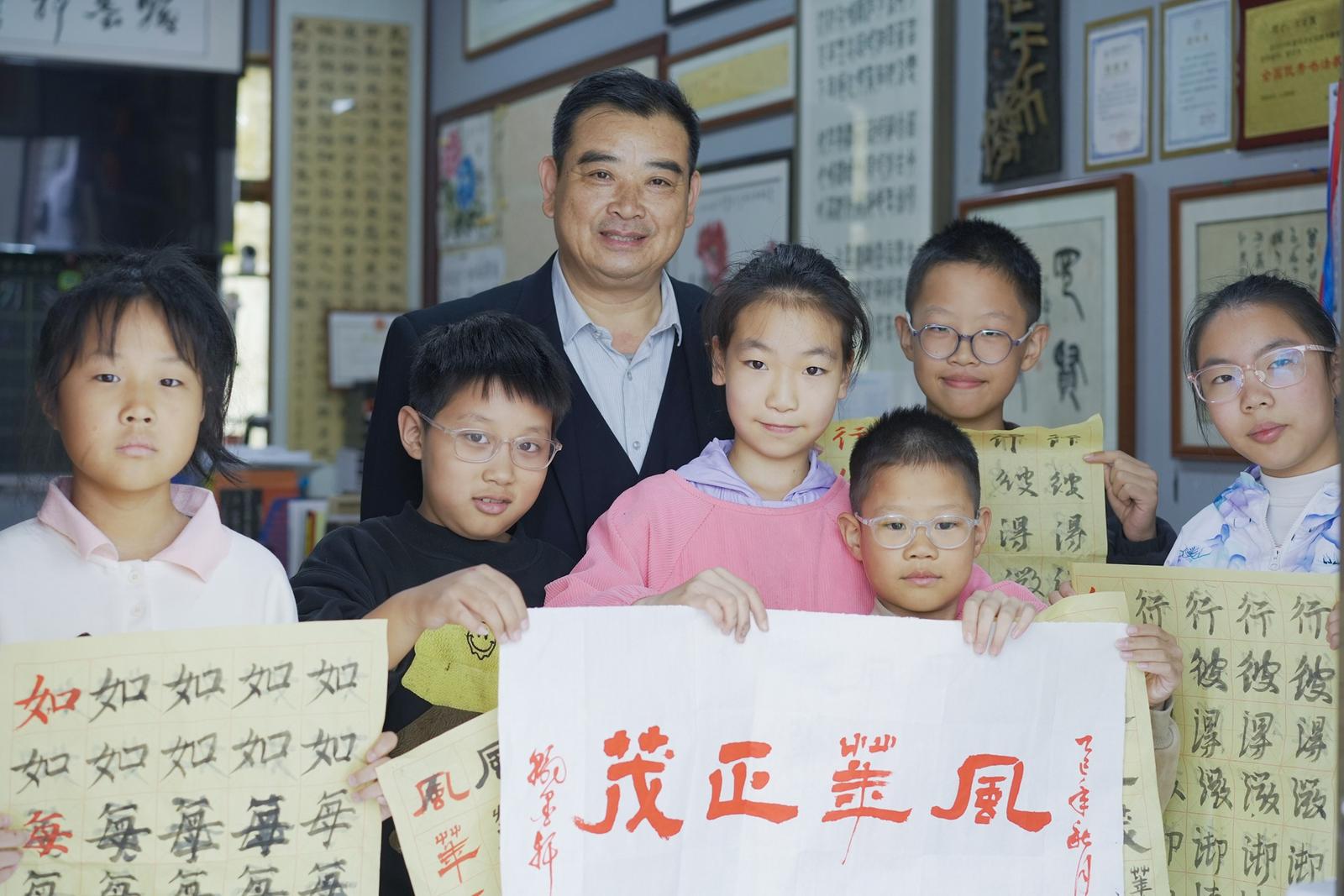 当看到孩子们的笔下渐渐有了章法,王老师严肃的脸上便会绽开慈祥的笑容。“教孩子写字,也是在传递做人的道理。”这支特殊的毛笔,不仅勾勒出汉字的形神,更在老少之间架起文化传承的桥梁。笔墨飞舞间,华夏文明的脉络在悄然延续。