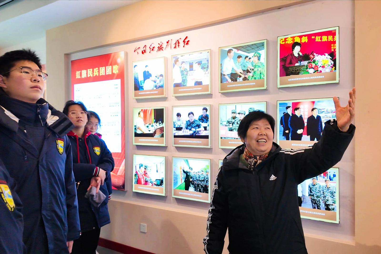 在角斜红旗民兵团史绩陈列馆内,老干部党支部书记符秀玲正声情并茂地为孩子们讲述峥嵘岁月。她虽已华发斑驳,但声音洪亮,眼神坚定,带领孩子们穿越历史烟云,感受永不褪色的红旗精神。