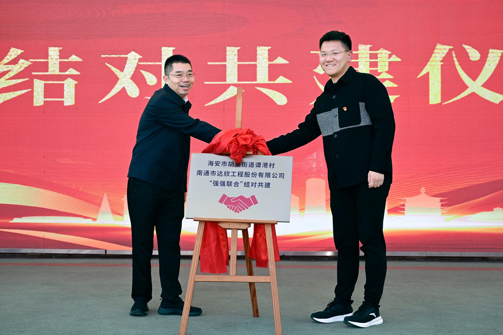随后进行的两项结对共建仪式将活动推向高潮。借助谭港村作为“省优质文化直达基层试点”的优势,村党总支与江苏省演艺集团话剧院党支部正式结对共建。在江苏省演艺集团话剧院书记、一级编剧解涛与谭港村党总支书记夏彬的共同揭牌下,未来将有更多高品质的艺术作品直达乡村,将“订单式、菜单式”的文化惠民服务推向新高度;为巩固“全国文明村”建设成果,谭港村与南通市达欣工程股份有限公司携手共建。公司党委副书记、副董事长杨静与谭港村副书记江凯共同上台揭牌,标志着双方将在优势互补、项目互助中,为谭港村的乡村振兴和精神文明建设注入新的强大动能。