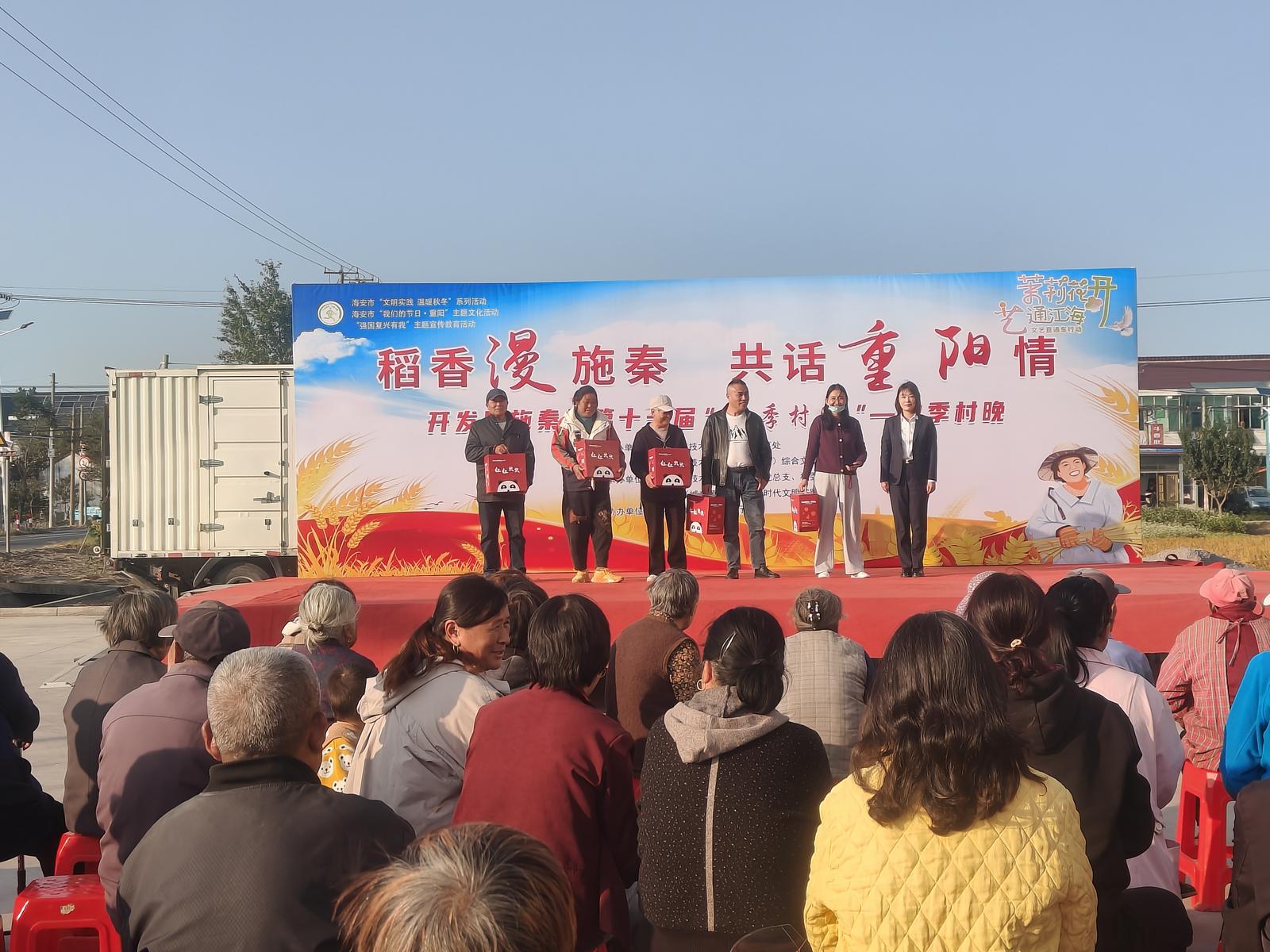 金秋送爽,稻谷飘香。为弘扬中华民族尊老敬老的传统美德,丰富村民精神文化生活,10月28日,海安经济技术开发区施秦村以“稻香漫施秦 共话重阳情”为主题,成功举办了一场集趣味运动与文艺汇演于一体的重阳节庆祝活动。活动分为上午的农民运动会和下午的“四季村晚”文艺演出,为全村老人及村民献上了一份丰盛的节日文化大餐。