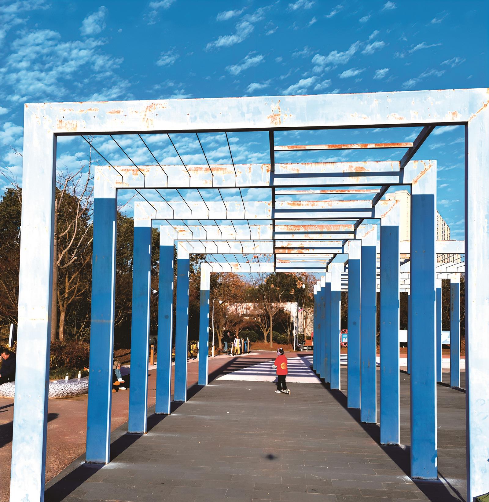 1月1日,海门江海公园,一个小女孩在玩滑板车。 宋武斌