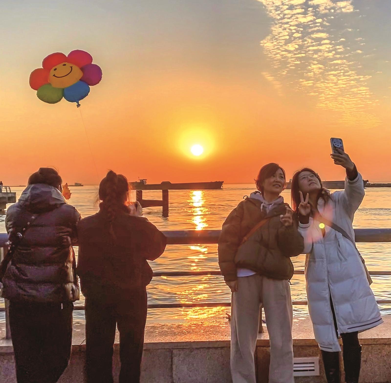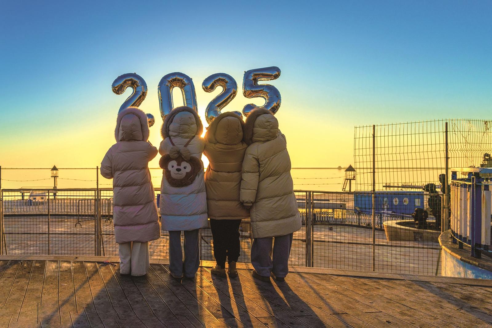 1月1日,启东市恒大威尼斯,四名少女迎接2025年第一缕晨曦。 黄是春