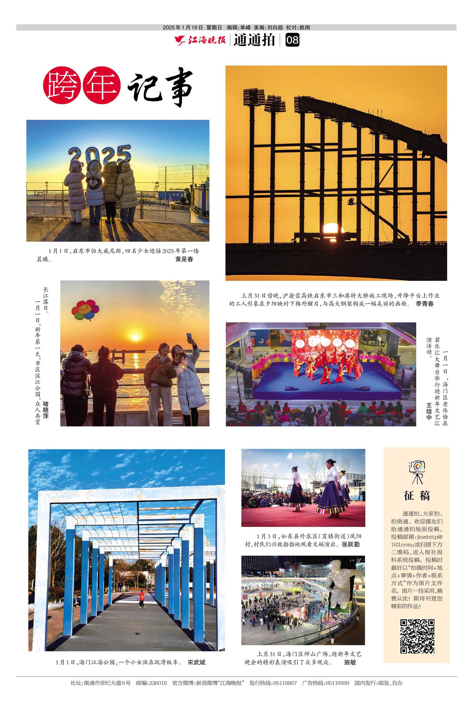 通通拍,大家拍、拍南通。欢迎摄友们给通通拍版面投稿。投稿邮箱:jhwbttp@163.com;或扫描下方二维码,进入报社报料系统投稿。投稿时最好以“拍摄时间+地点+事情+作者+联系方式”作为图片文件名。图片一经采用,稿费从优!期待刊登您精彩的作品!