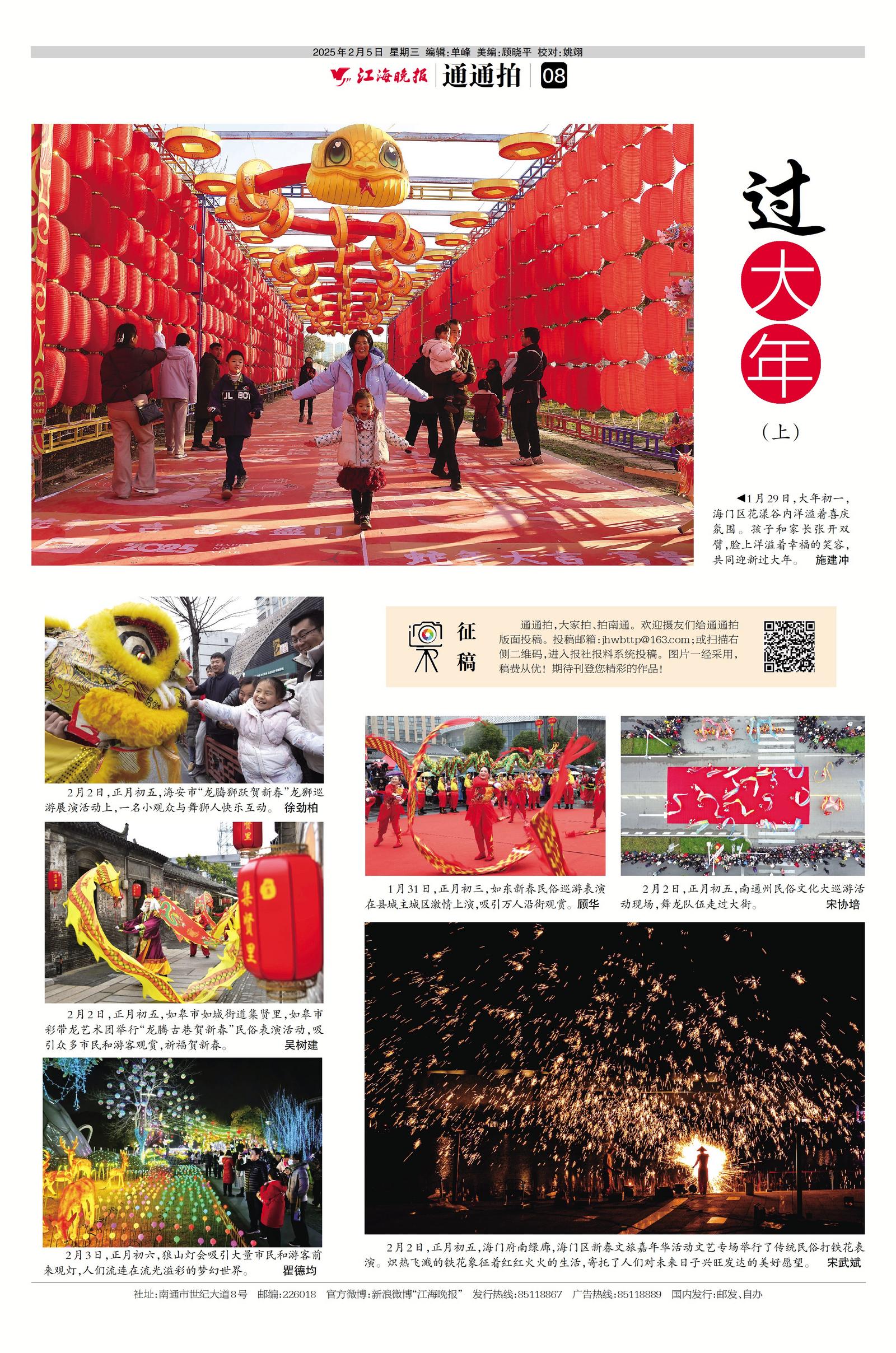 通通拍,大家拍、拍南通。欢迎摄友们给通通拍版面投稿。投稿邮箱:jhwbttp@163.com;或扫描下方二维码,进入报社报料系统投稿。投稿时最好以“拍摄时间+地点+事情+作者+联系方式”作为图片文件名。图片一经采用,稿费从优!期待刊登您精彩的作品!