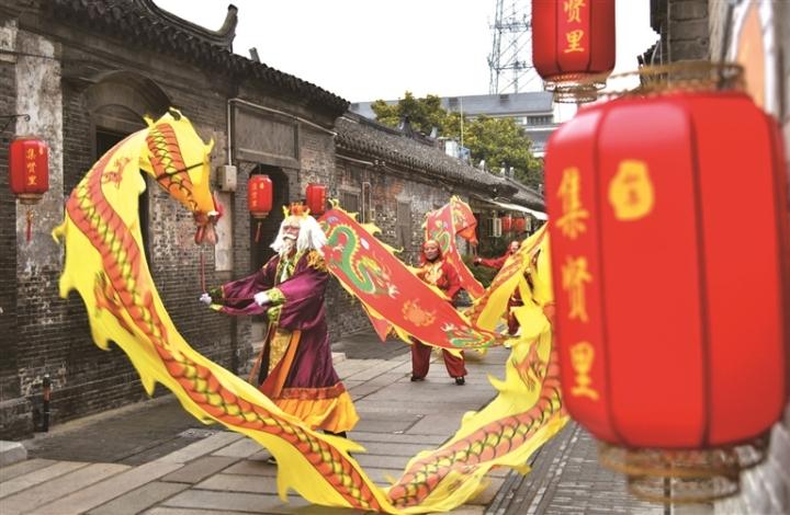 2月2日,正月初五,如皋市如城街道集贤里,如皋市彩带龙艺术团举行“龙腾古巷贺新春”民俗表演活动,吸引众多市民和游客观赏,祈福贺新春。吴树建