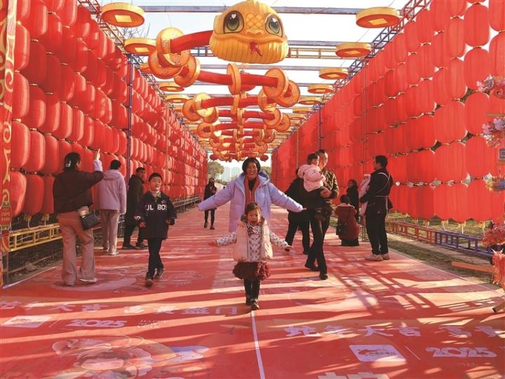 ◀1月29日,大年初一,海门区花漾谷内洋溢着喜庆氛围。孩子和家长张开双臂,脸上洋溢着幸福的笑容,共同迎新过大年。 施建冲