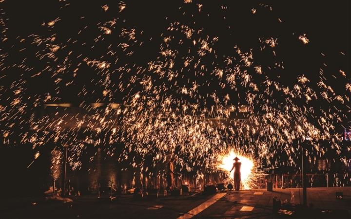 2月2日,正月初五,海门府南绿廊,海门区新春文旅嘉年华活动文艺专场举行了传统民俗打铁花表演。炽热飞溅的铁花象征着红红火火的生活,寄托了人们对未来日子兴旺发达的美好愿望。 宋武斌