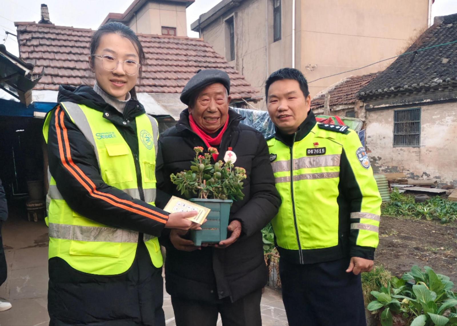 “吴爷爷,新年好”,当天下午,大学生志愿者张赵炜在妈妈陪同下,带着老人喜欢的米酒、牛肉等,轻车熟路率先到达吴老家中拜年。两年前小张在高考前参加了 “学习雷锋精神、致敬中国好人”志愿服务活动,深受磨刀老人“生命不息、行善不止”精神感染,立志献身国防事业,通过努力考取军事院校,成为空军飞行员。志愿者们带来了拜访老人的合影画册,老人开心的在照片们寻找熟悉的身影,与志愿者们开心的拉起了家常,并开心的拿起毛笔书写“福”字,祝福大家幸福成长。就读通州高级中学高三年级的李保珏,专门带来自家盆栽的长寿花送给吴老。今年是第一个非遗中国年,蒸包子是中华民族传统年俗,志愿者团队开展了“迎新春、习民俗、送温暖”活动,通过用体验民俗的方式参与制作传统新春美食,制作寓意蒸蒸日上的幸福包,开展敬老慰问,来自南通惠生汽车检测公司的志愿者陈玲玲带着志愿者们亲手制作的“团团圆圆”包子与老人共渡中国年。