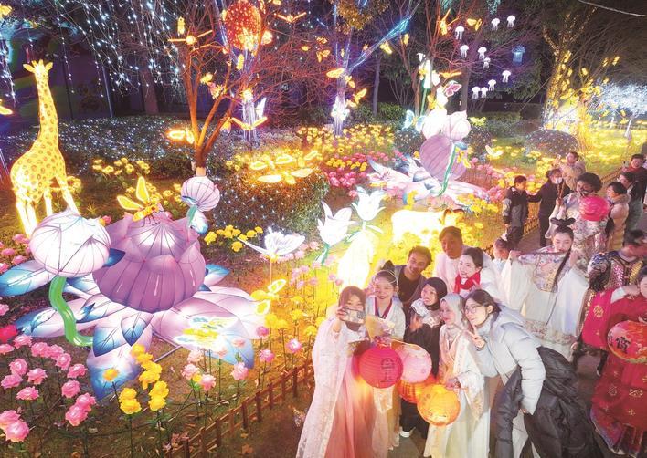 2月12日,爱上南通 品味崇川——“寻味中国年 非遗闹元宵”中外文化交流活动在狼山景区举行。身着汉服的中外友人一起赏花灯,感受中华传统文化的独特魅力。许丛军