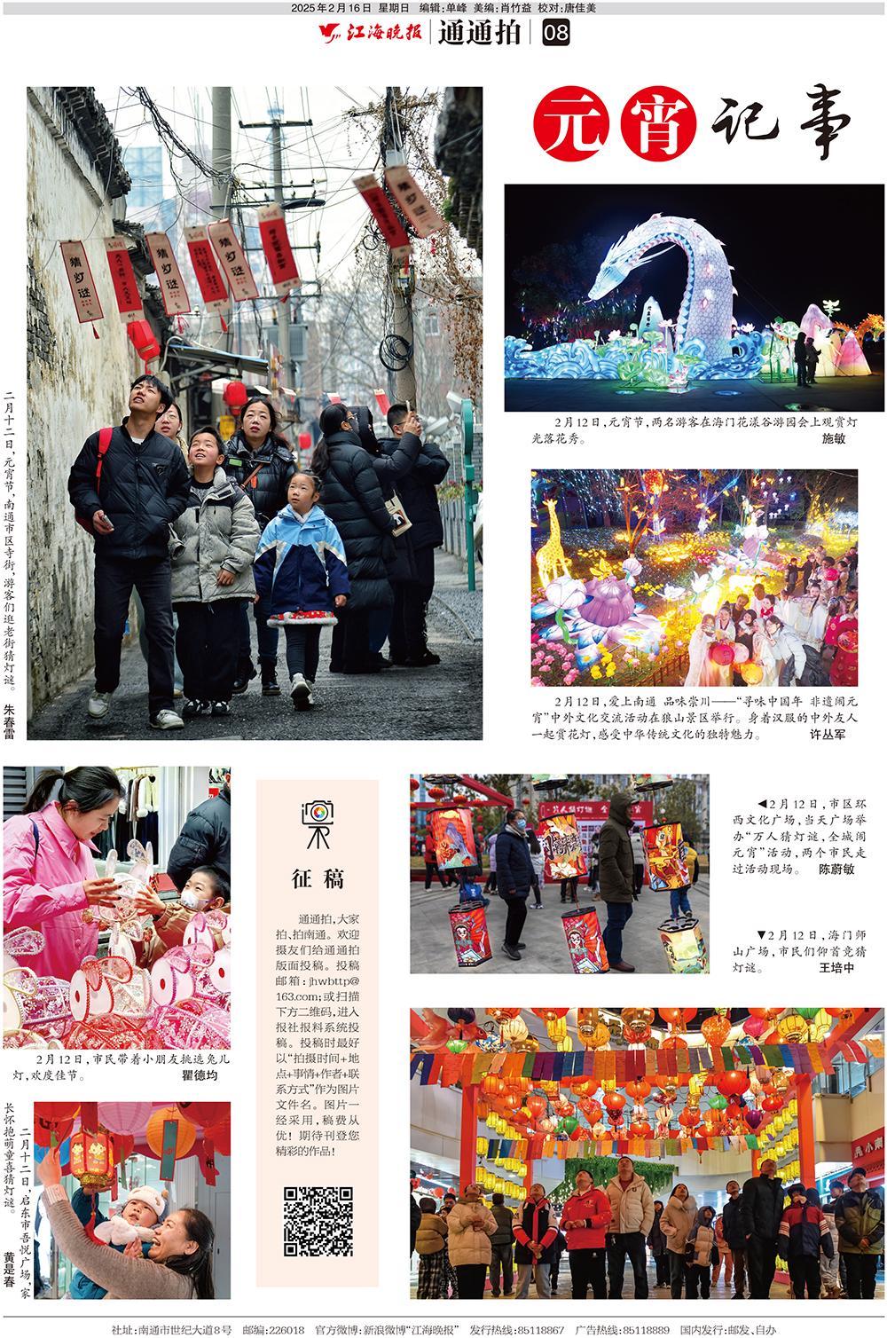通通拍,大家拍、拍南通。欢迎摄友们给通通拍版面投稿。投稿邮箱:jhwbttp@163.com;或扫描二维码,进入报社报料系统投稿。投稿时最好以“拍摄时间+地点+事情+作者+联系方式”作为图片文件名。图片一经采用,稿费从优!期待刊登您精彩的作品!