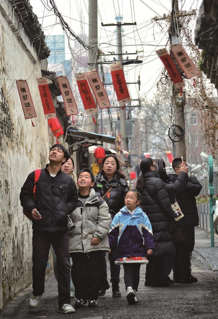 2月12日,元宵节,南通市区寺街,游客们逛老街猜灯谜。 朱春雷