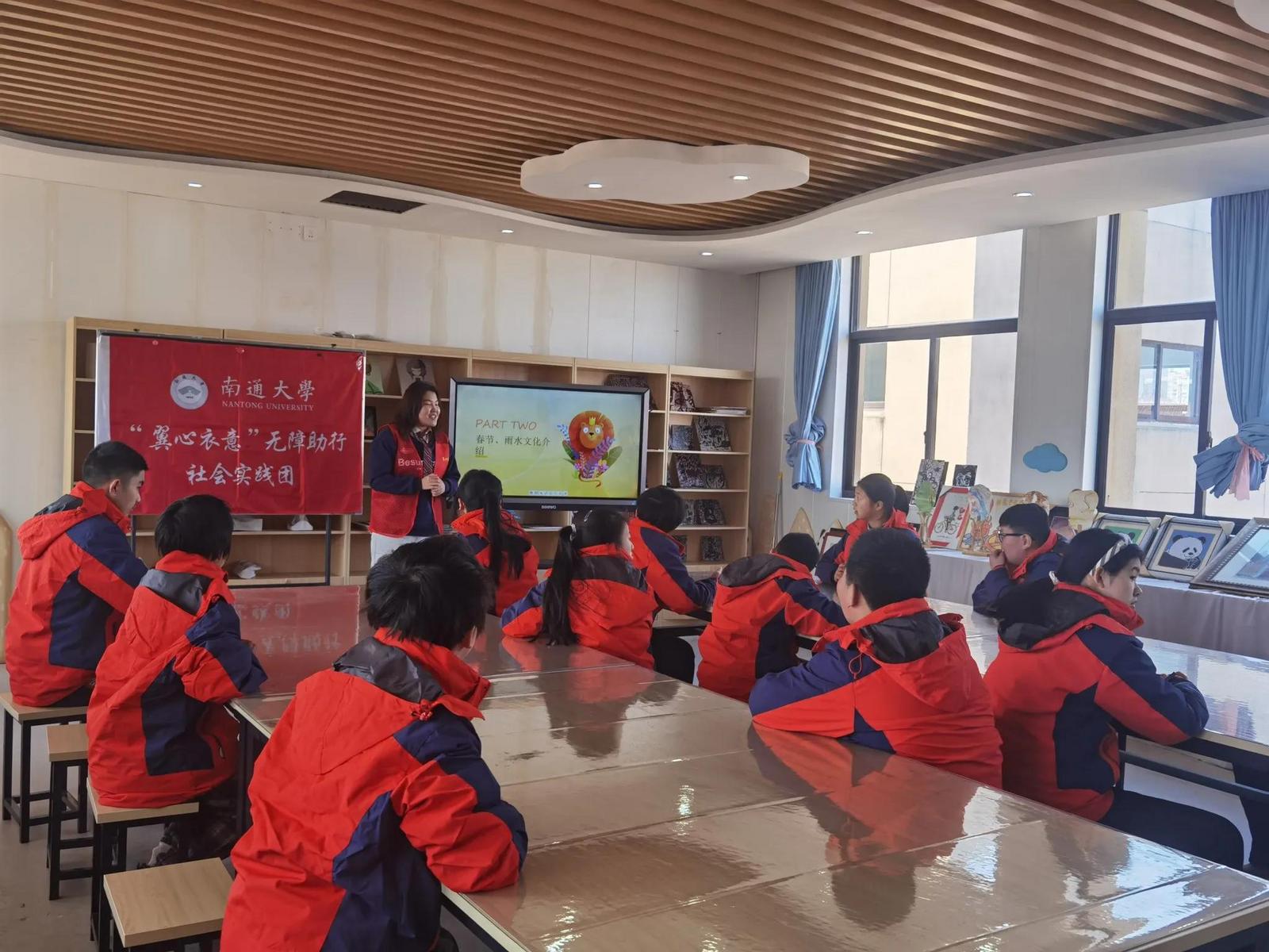 在通州区特殊教育学校残疾人之家的活动现场,南通大学纺织服装学院“翼心衣意”无障助行实践团的志愿者们以多媒体形式生动讲解"雨水"节气物候特征及春节文化内涵。通过"春牛图""雨水三候"等传统意象的展示,激发同学们对自然时序的感知。在随后的贴布画创作环节,特殊教育学生与志愿者结成创作小组,运用彩布、棉麻等纺织材料,将用拼贴手法完成《春雨交响曲》,通过不同质感的布料叠加,展现"天街小雨润如酥"的意境。