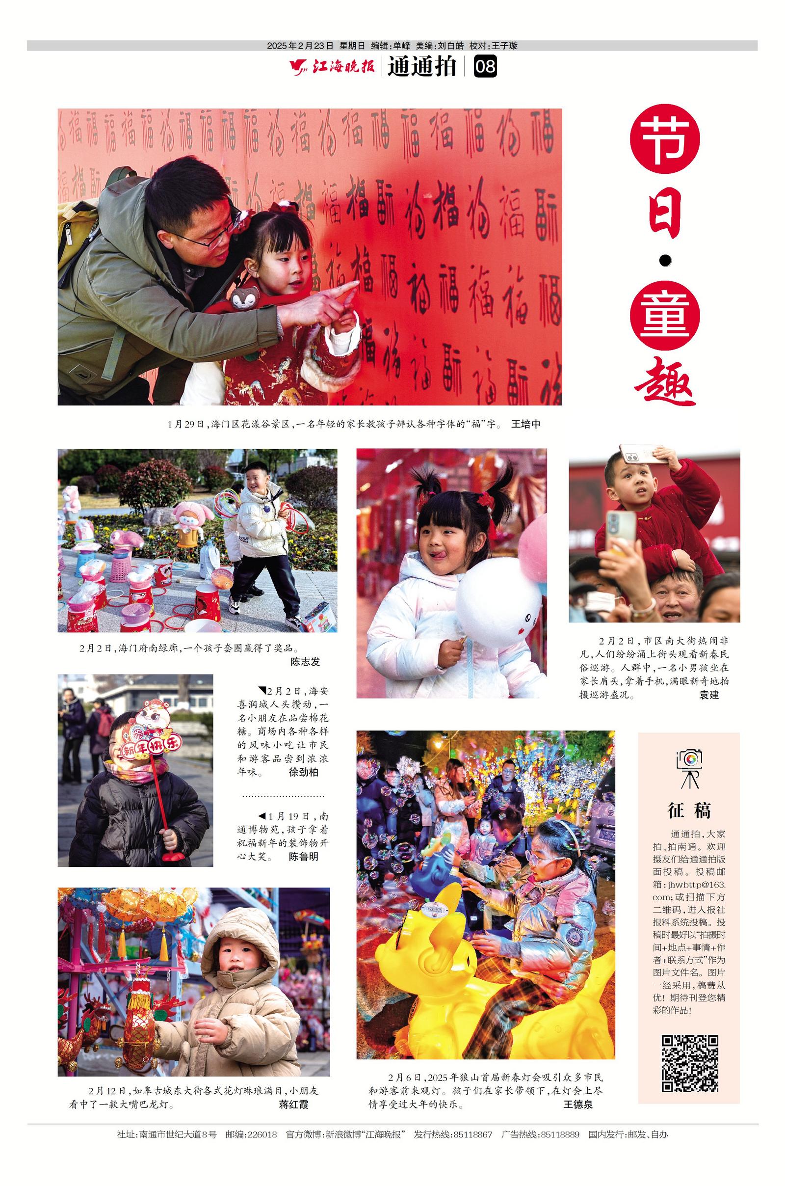 通通拍,大家拍、拍南通。欢迎摄友们给通通拍版面投稿。投稿邮箱:jhwbttp@163.com;或扫描二维码,进入报社报料系统投稿。投稿时最好以“拍摄时间+地点+事情+作者+联系方式”作为图片文件名。图片一经采用,稿费从优!期待刊登您精彩的作品!