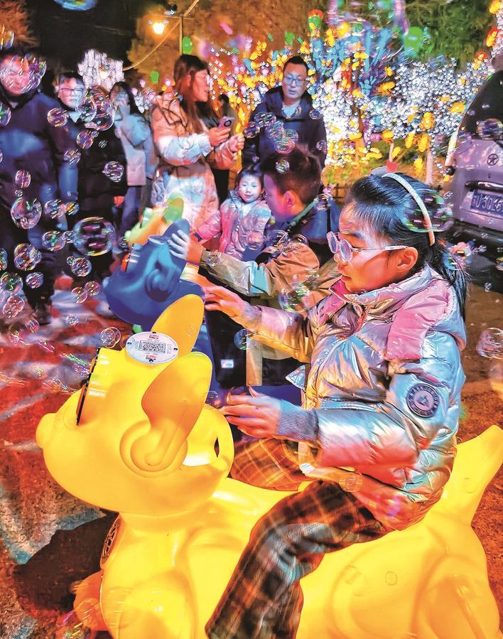 2月6日,2025年狼山首届新春灯会吸引众多市民和游客前来观灯。孩子们在家长带领下,在灯会上尽情享受过大年的快乐。 王德泉