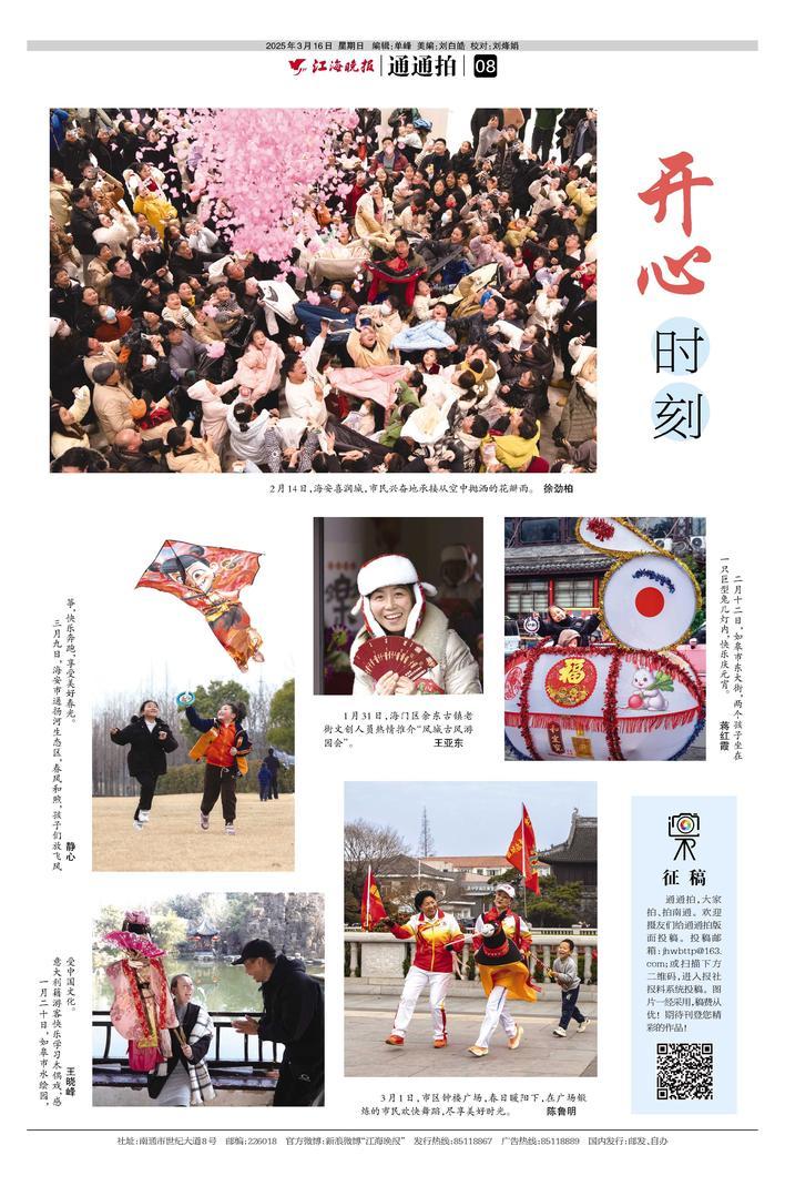 通通拍,大家拍、拍南通。欢迎摄友们给通通拍版面投稿。投稿邮箱:jhwbttp@163.com;或扫描二维码,进入报社报料系统投稿。投稿时最好以“拍摄时间+地点+事情+作者+联系方式”作为图片文件名。图片一经采用,稿费从优!期待刊登您精彩的作品!