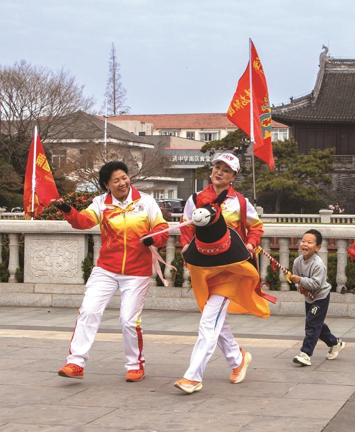 3月1日,市区钟楼广场,春日暖阳下,在广场锻炼的市民欢快舞蹈,尽享美好时光。陈鲁明