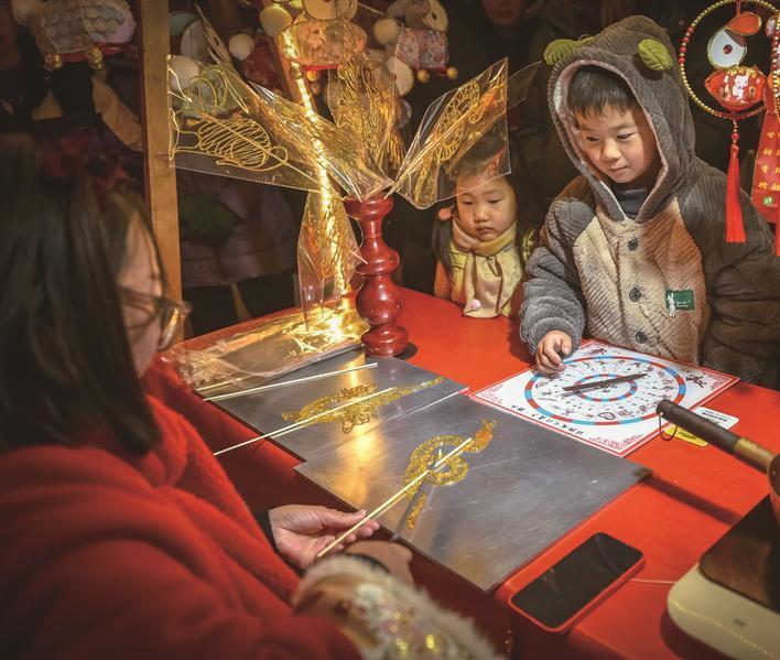 2月3日,海门区府南绿廊,孩子们被糖画所吸引。王培中