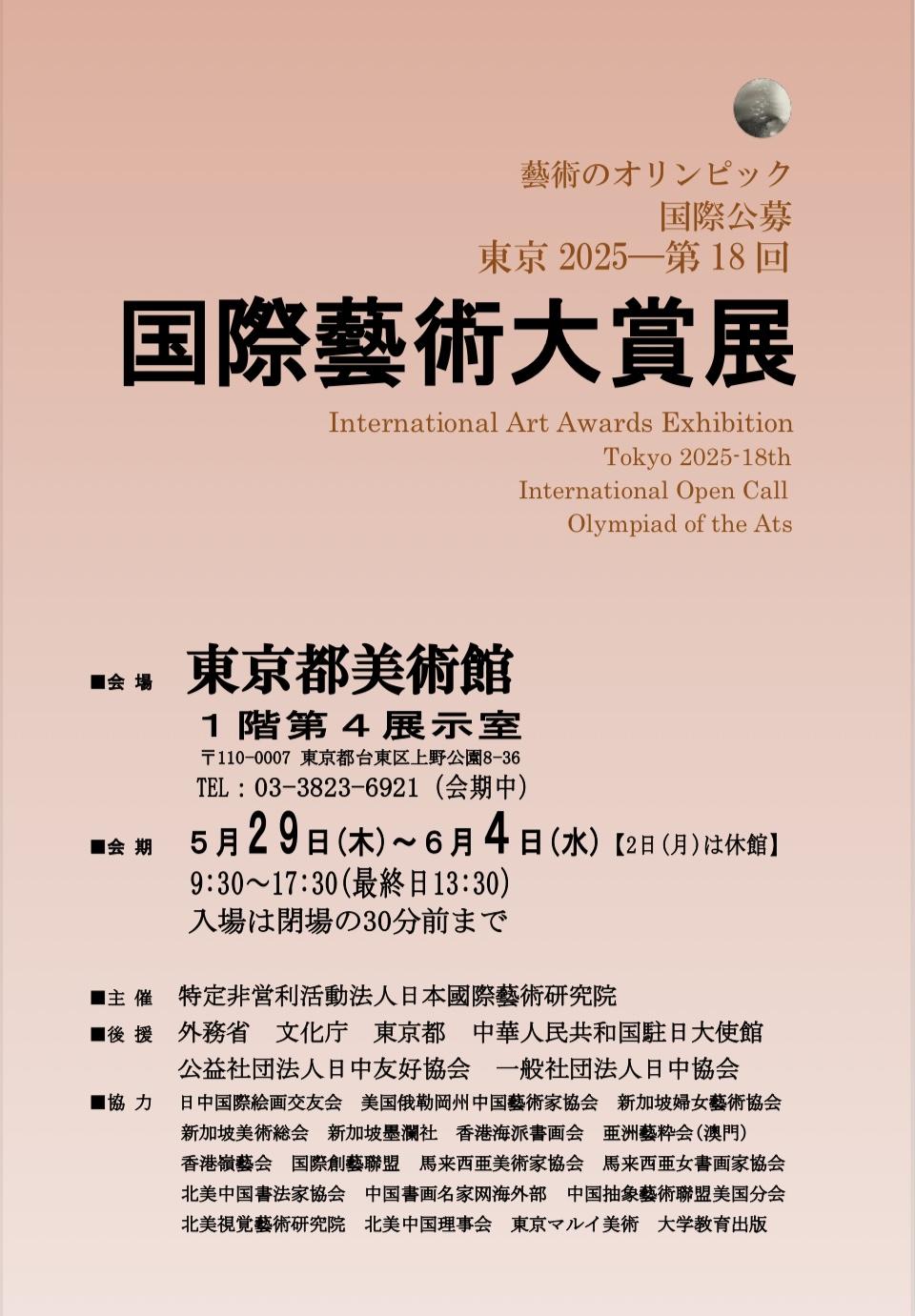 南通籍艺术家郑忠荣获东京2025·第十八届国际书画大赏展“日本国际艺术研究院奖”。大赏展由NPO法人日本国际艺术研究院主办,日本外務省、文部科学省、东京都政府、中国驻日大使馆等政府府机构后援,海内外多家团体协力。每年一次的国际大型艺术展即将迎来东京2025年的第十八届国际书画大赏展。这次展览汇集了来自十八个国家的约三百件形式多样、种类繁多的艺术作品。