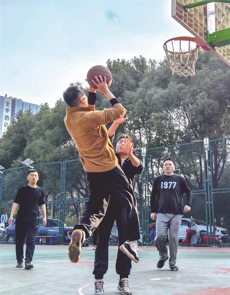 2月24日,市区城闸大桥下两个免费篮球场,吸引了很多篮球迷来打球健身。他们自发组织一些小型比赛,相互切磋篮球技艺。 袁德君