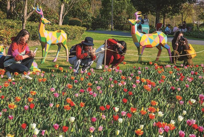 3月21日,南通啬园郁金香花盛开,吸引了许多市民前来赏花。市老年大学摄影班也将课堂搬到园内,现场教学,拍摄采风。钱伟章