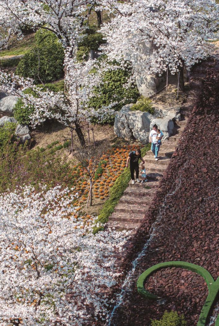 3月26日,南通洲际梦幻岛,樱花盛开如雪,一家人漫步樱花树下,享受春光。佚名