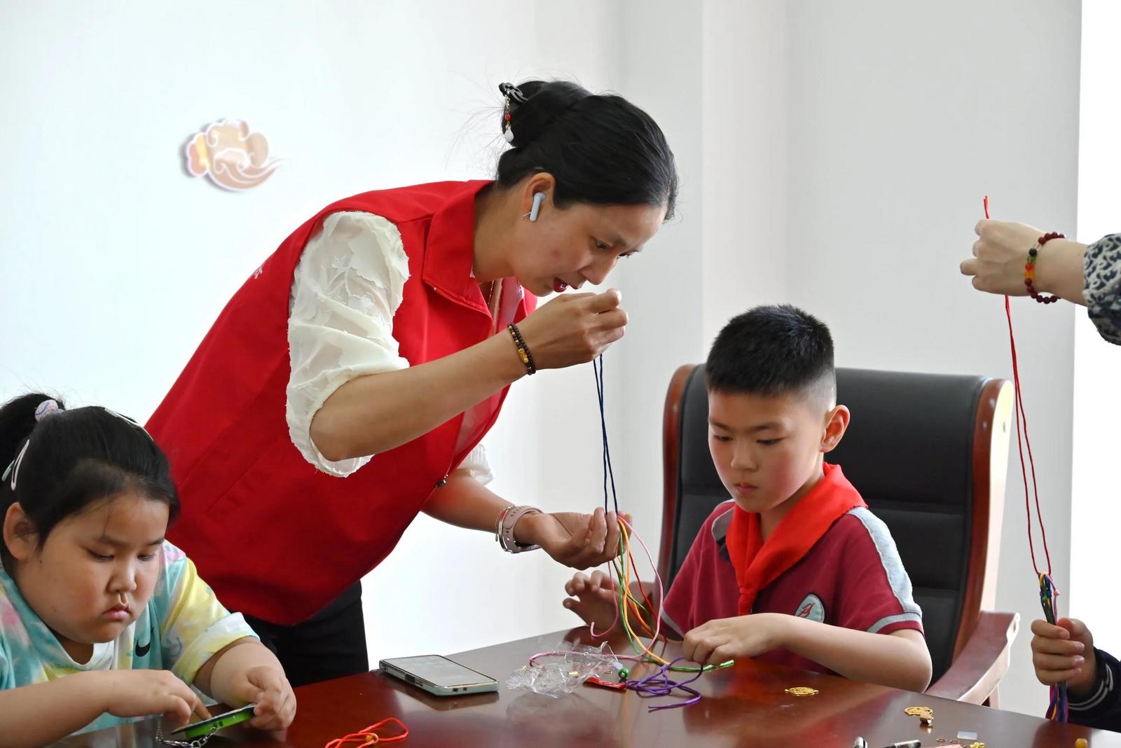 在编织蛋袋环节,志愿者带领大家体验网袋编织。五彩丝线在居民们手中穿梭缠绕,从最初的生疏到逐渐掌握技巧,一个个造型独特、色彩斑斓的蛋袋逐渐成型。新手妈妈李女士笑着说:“第一次尝试编织,虽然手忙脚乱,但和邻居们一起边学边聊特别开心,还能给孩子的彩蛋做个漂亮‘小家’!”