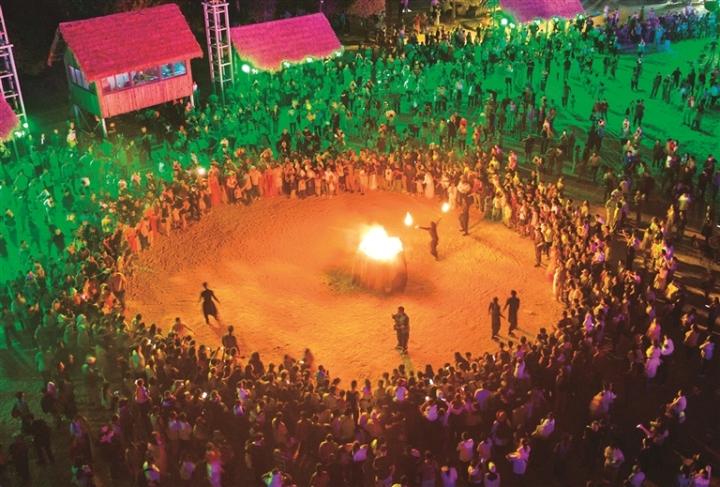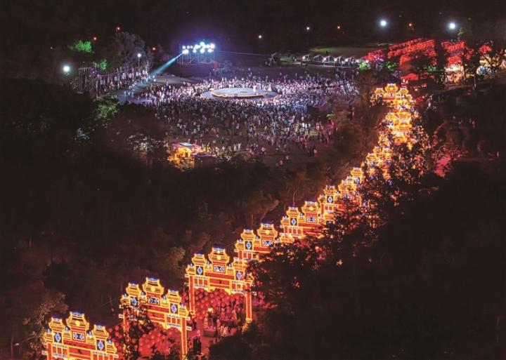 2日夜,南通植物园,灯光迤逦如龙,盛大的苗侗女儿节活动吸引了众多游客参与。悠扬的芦笙、欢快的侗族大歌表演,博得观众阵阵喝彩。范鎧毓