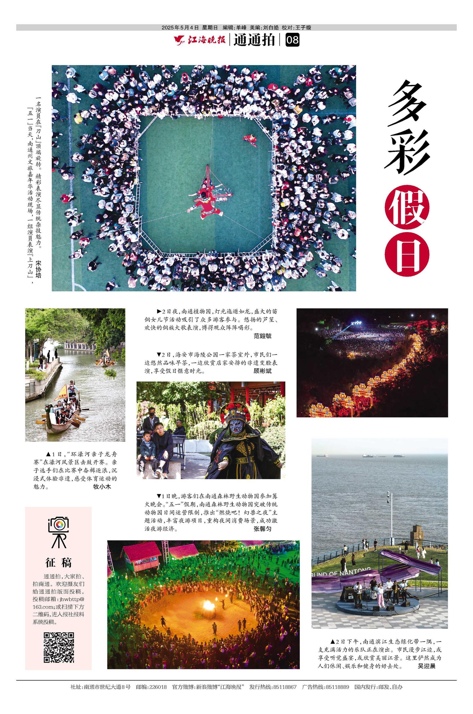 通通拍,大家拍、拍南通。欢迎摄友们给通通拍版面投稿。投稿邮箱:jhwbttp@163.com;或扫描二维码,进入报社报料系统投稿。投稿时最好以“拍摄时间+地点+事情+作者+联系方式”作为图片文件名。图片一经采用,稿费从优!期待刊登您精彩的作品!