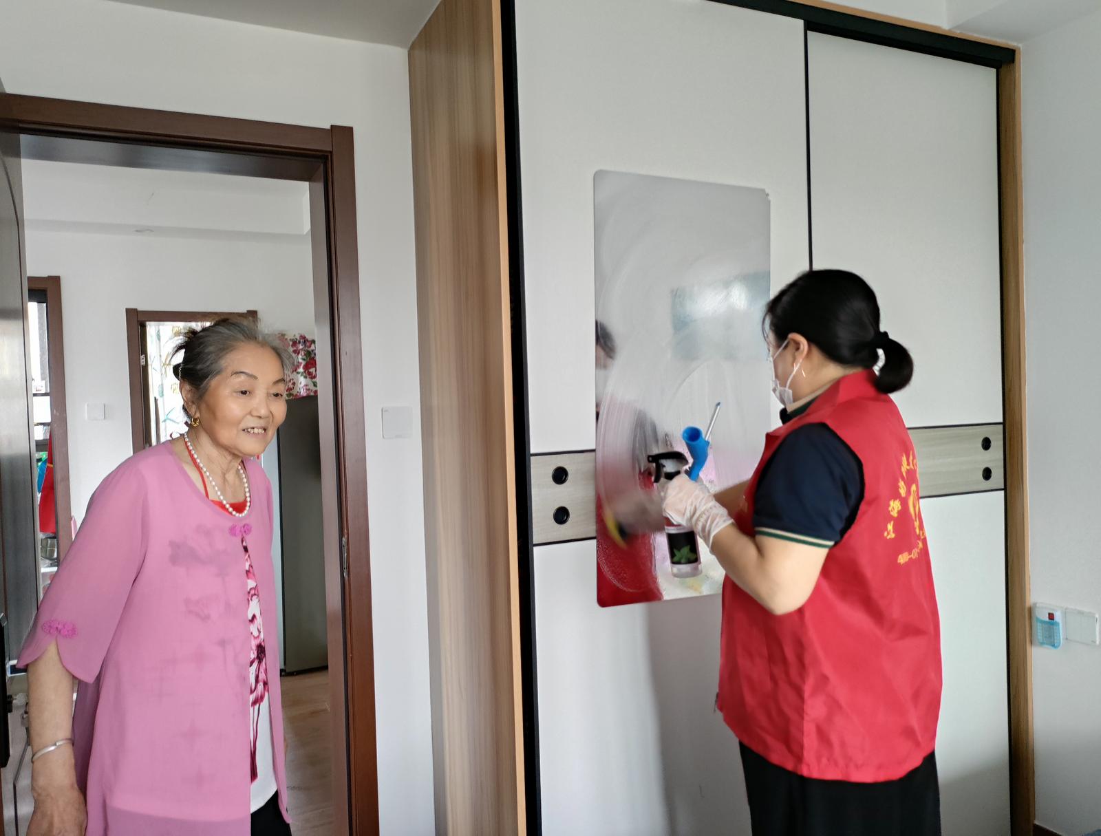 “真是多亏了两位妹子,让我不用为家里做卫生烦恼了。”今年74岁的陈红旗和老伴两人生活,老伴曾经中风过、腿脚不便。随着年岁的增大,加上日常要照顾老伴,家务活儿陈红旗干起来日渐吃力。半年前,陈红旗尝试购买驿站的居家保洁和做饭服务,生活轻松了许多。