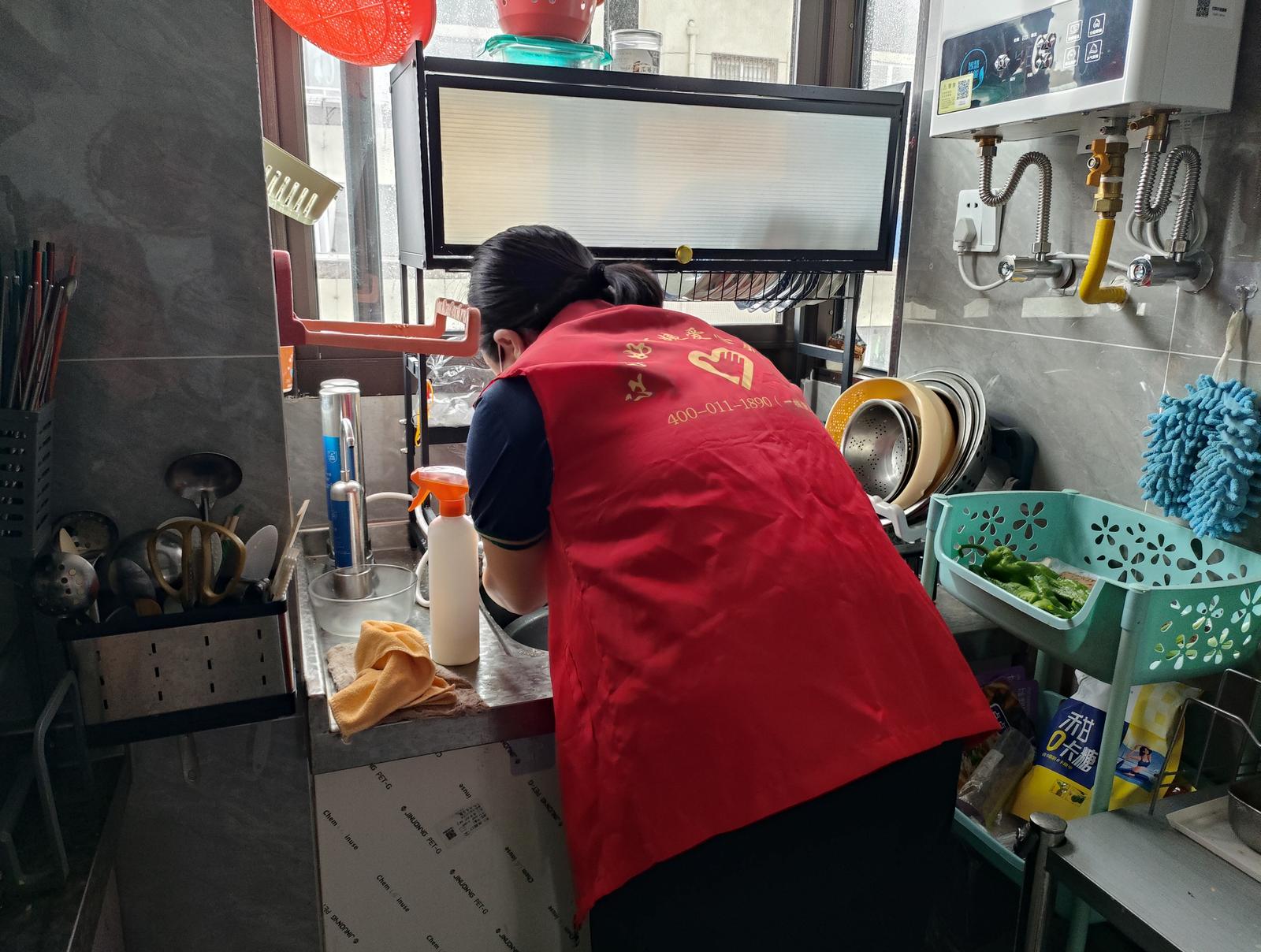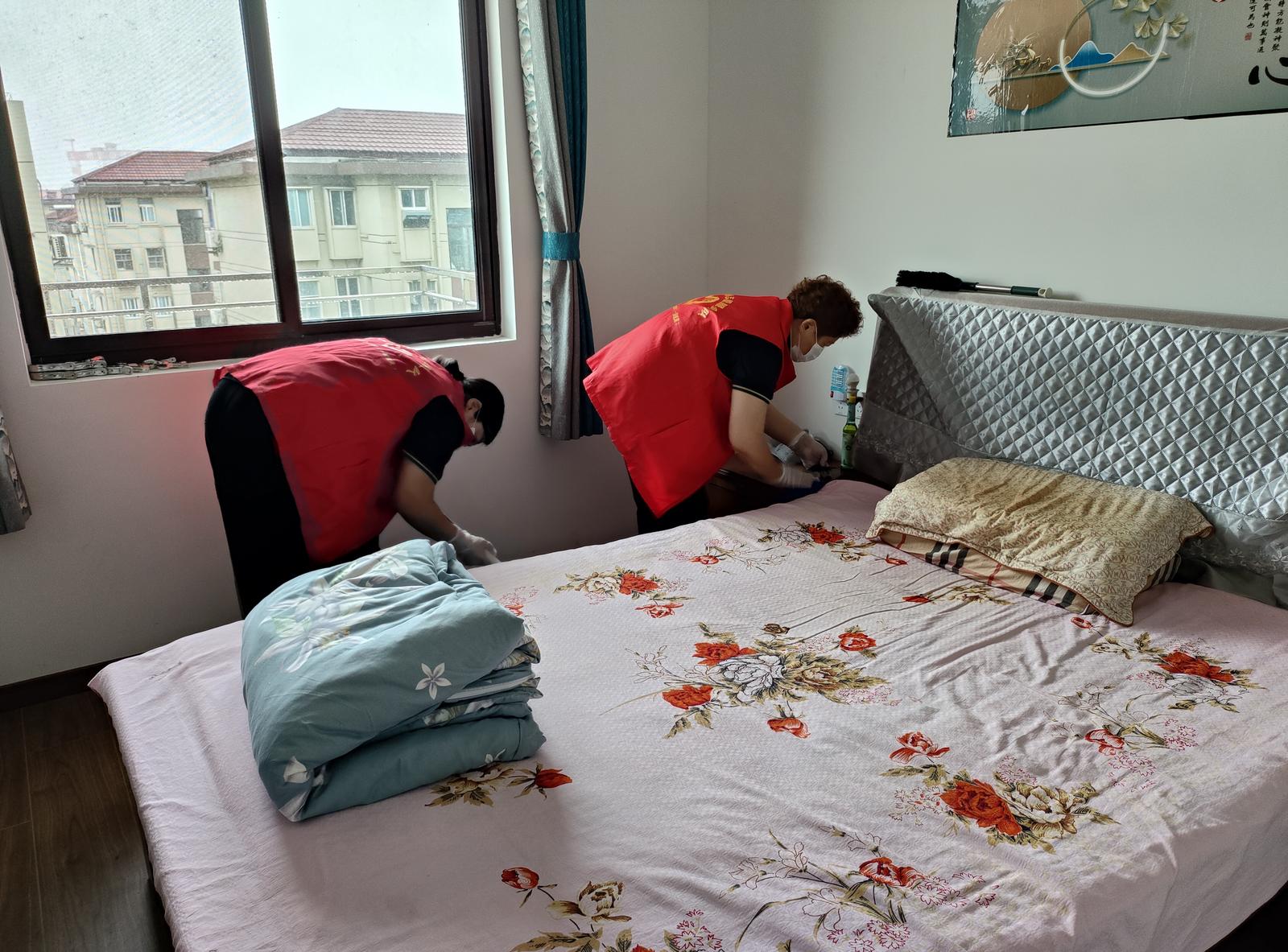 “卫生间和厨房间是重点,我们每次来都会做一遍。”吴明娱一边擦洗马桶边缘一边介绍,“这些地方需要弯腰,老人家自己做是不太方便的。”忙完卫生间,俩人又把卧室、客厅、厨房的角角落落都进行了打扫。不到2个小时,家里变得更加亮堂、干净了。