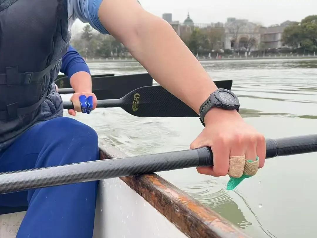 为了让初识龙舟的年轻队员迅速找到水下的桨效,每天雷打不动的是清晨绕濠河三圈的长划。队员们穿上防水衣,一次一次用力地挥动手里的船桨,寒冷的濠河水打湿了裸露在外的手臂,浸湿了躲在船舱里的双脚,十几公里长划让防水衣里灌满了汗水,等到训练完,船一靠岸,刺骨的寒风从领口钻进衣服里,每一个人都不由得就地打个冷战。而长期在冰水里舞动的双手也因此变得红肿,很多人从那时开始直到全运会预赛,手指腱鞘炎始终伴随着集训的始终,有时严重到握不住拳头,但却没有一个人松开握住的桨。