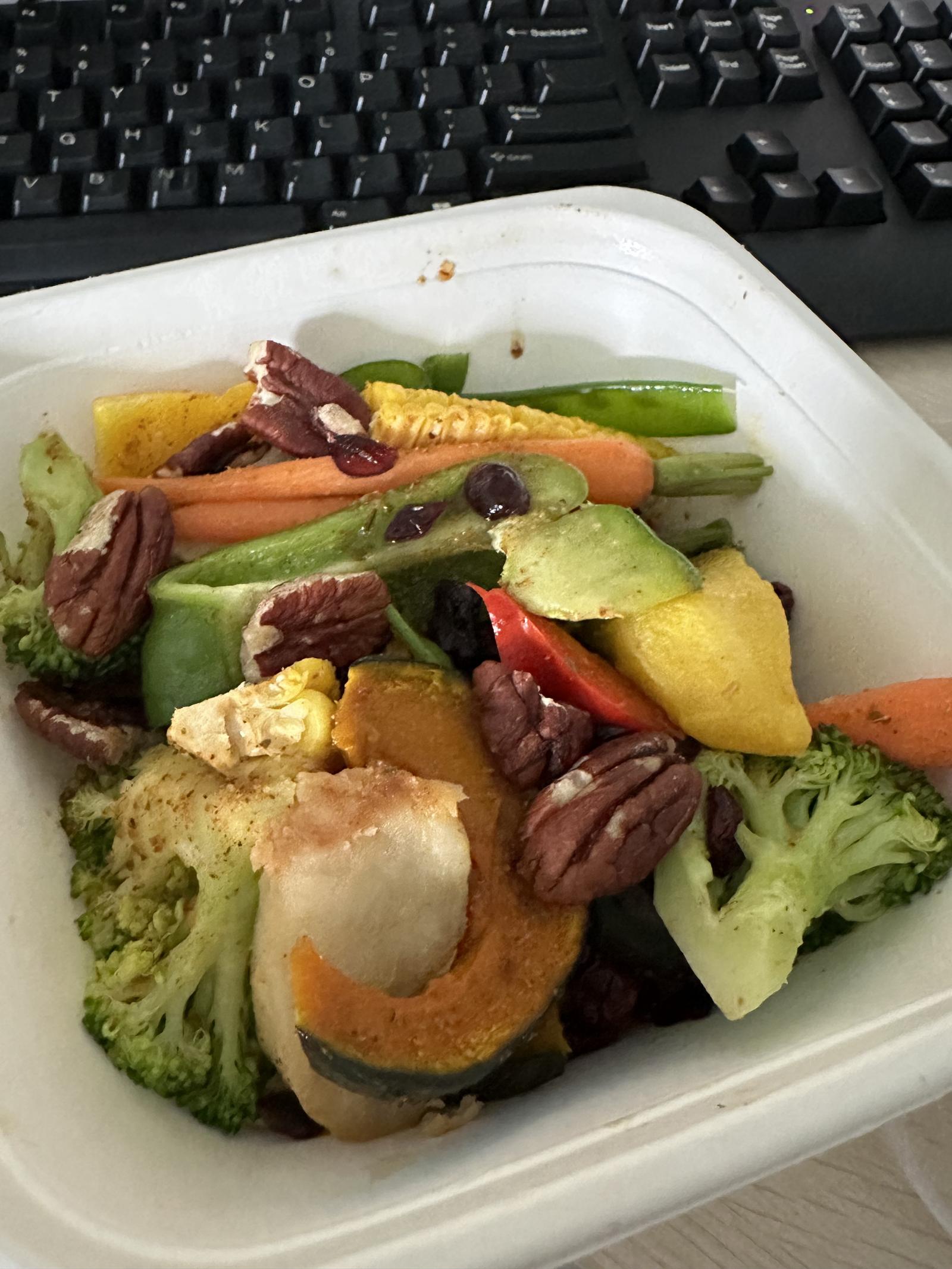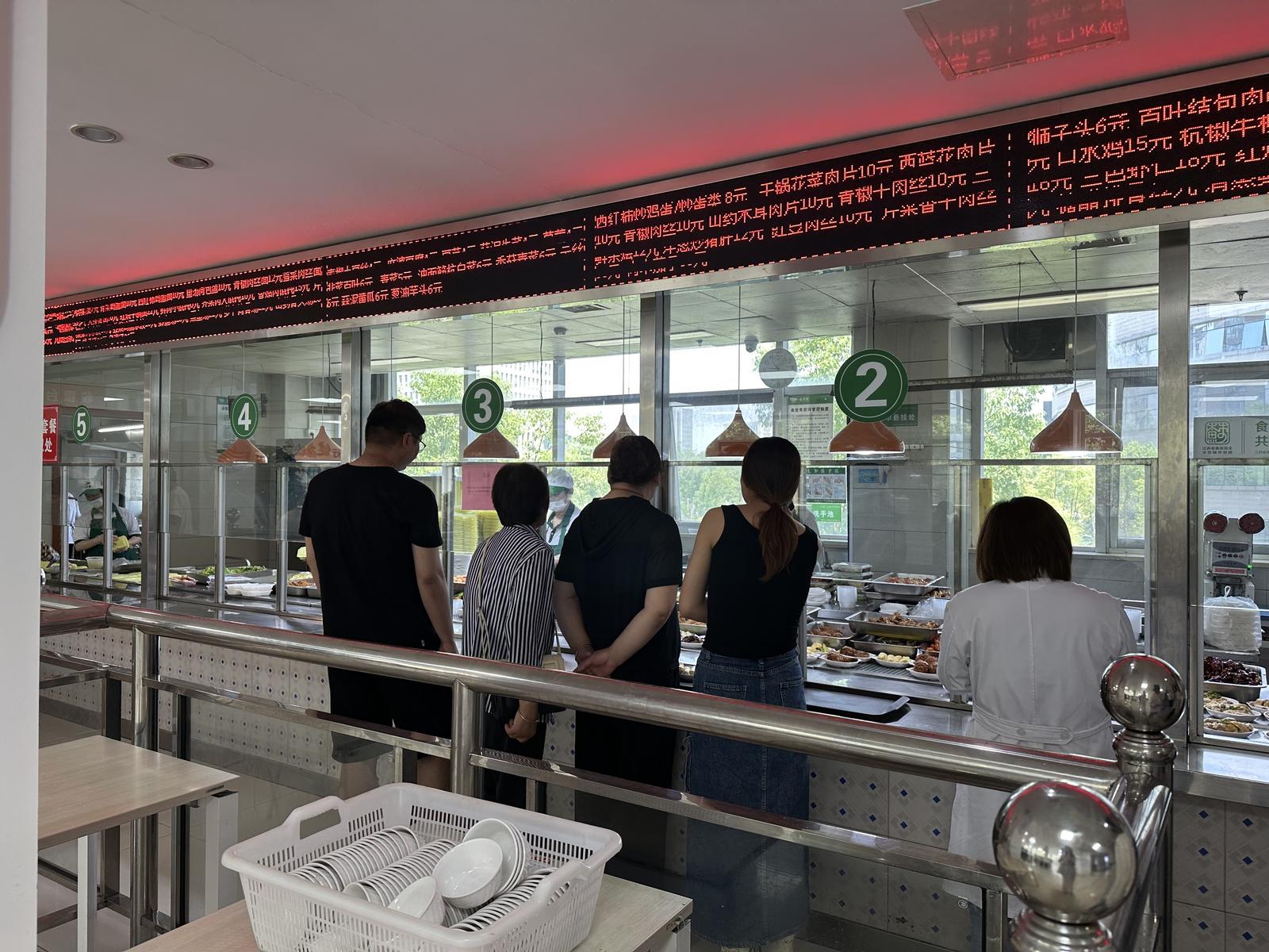 水晶虾仁配毛豆、玉米粒、胡萝卜丁,瘦肉片配西蓝花、红椒丝、黑木耳,炒鸡蛋配丝瓜、辣椒片,肚丝配西洋芹、干豆丝……这是25日中午,记者在市妇幼保健院食堂看到的一幕。