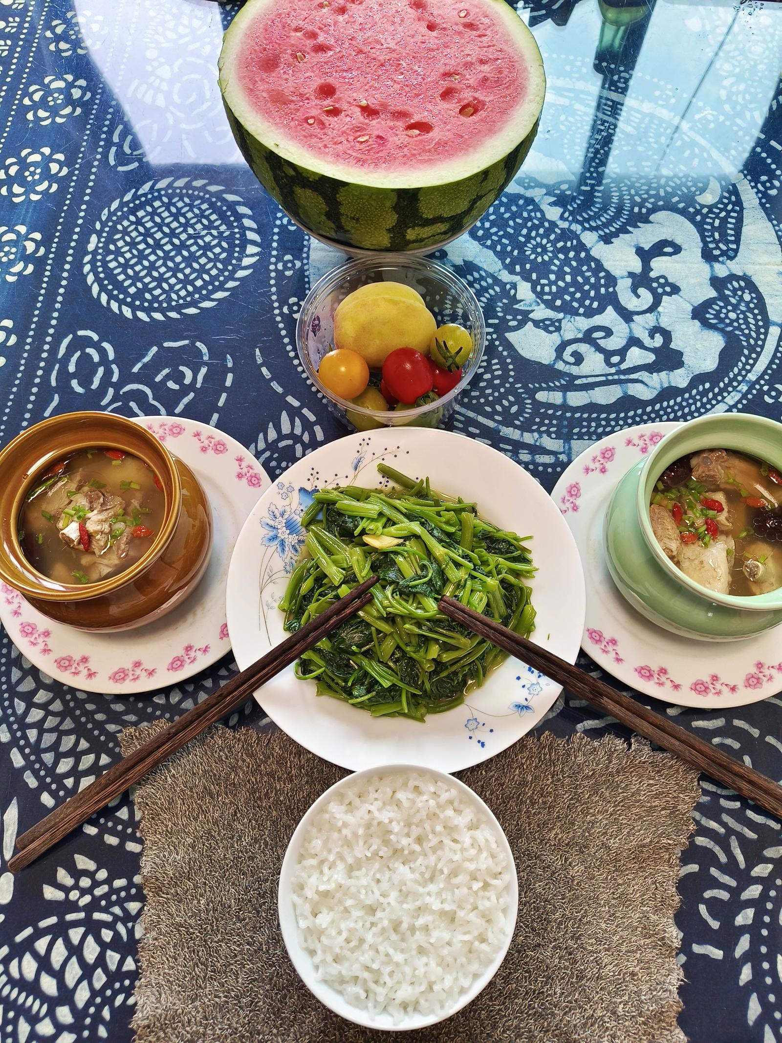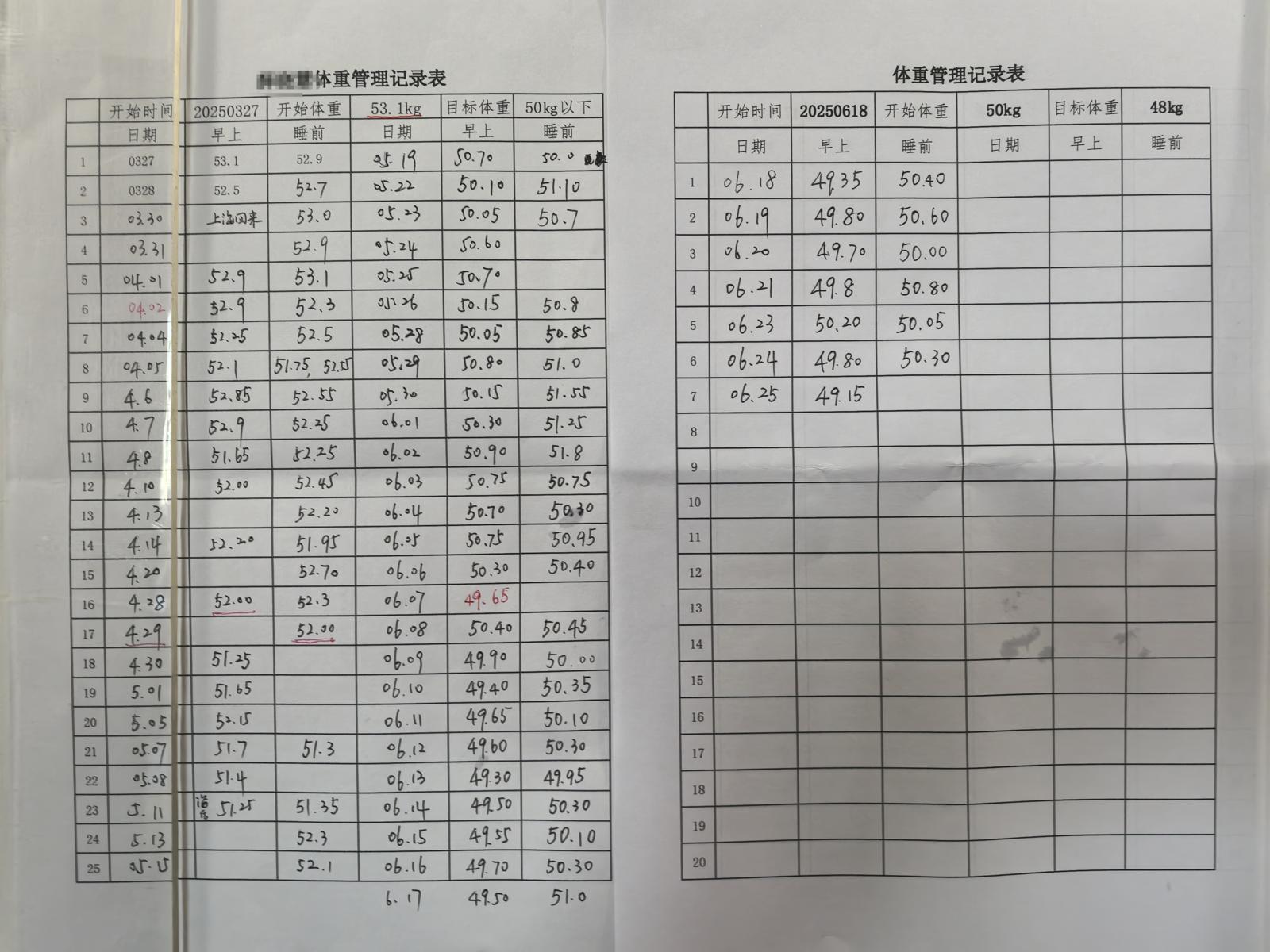 为证实自己取得的“辉煌战果”,薛慧慧还向记者提供了她自己认真制作的、约束自己的《体重管理记录表》,同时亮出了自己动手做的“独家减脂餐”:早餐是西瓜、桃子、生菜,鸡蛋、虾仁,外加玉米、馒头、包子;晚餐是素炒空心菜、一碗炖鸡块,水果搭配樱桃番茄、桃子、西瓜,主食是一小碗米饭。