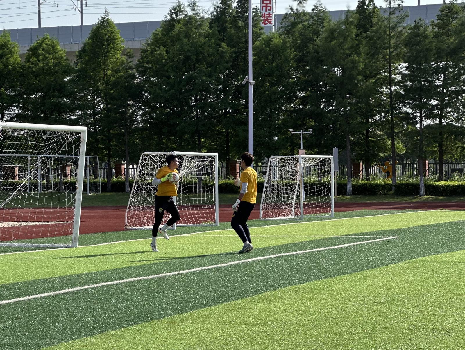 “抢球!”“快传!”16日下午,除了参加高考的三名球员,球队所有队员准时来到训练场地,进行国赛前最后一次校内常规训练。绿茵场上,足球小将们奔跑、拼抢、换位、突破,脸上、身上的汗水在阳光下熠熠闪光。“要百分百地投入训练,寻找漏洞、提升短板,尽全力发挥出最好的水平。”赛前采访中,球队副队长王旭目光坚定,他特别提到此前省赛对阵苏州吴县中学时对方的团队配合与传控能力,这正是他和队友们努力的方向,“作为副队长,我会和大家一起团结拼搏、争取胜利!”守门员李柘霖从初一开始接触足球,作为球队最坚实的后盾,他深知责任重大,“我的首要任务是稳固最后防线,所以要先加强训练、做好自己,才能保证球队防守的稳定。”正如他所言,对阵临沂二中时,他两次成功扑出对方点球,为胜利贡献了自己的力量。