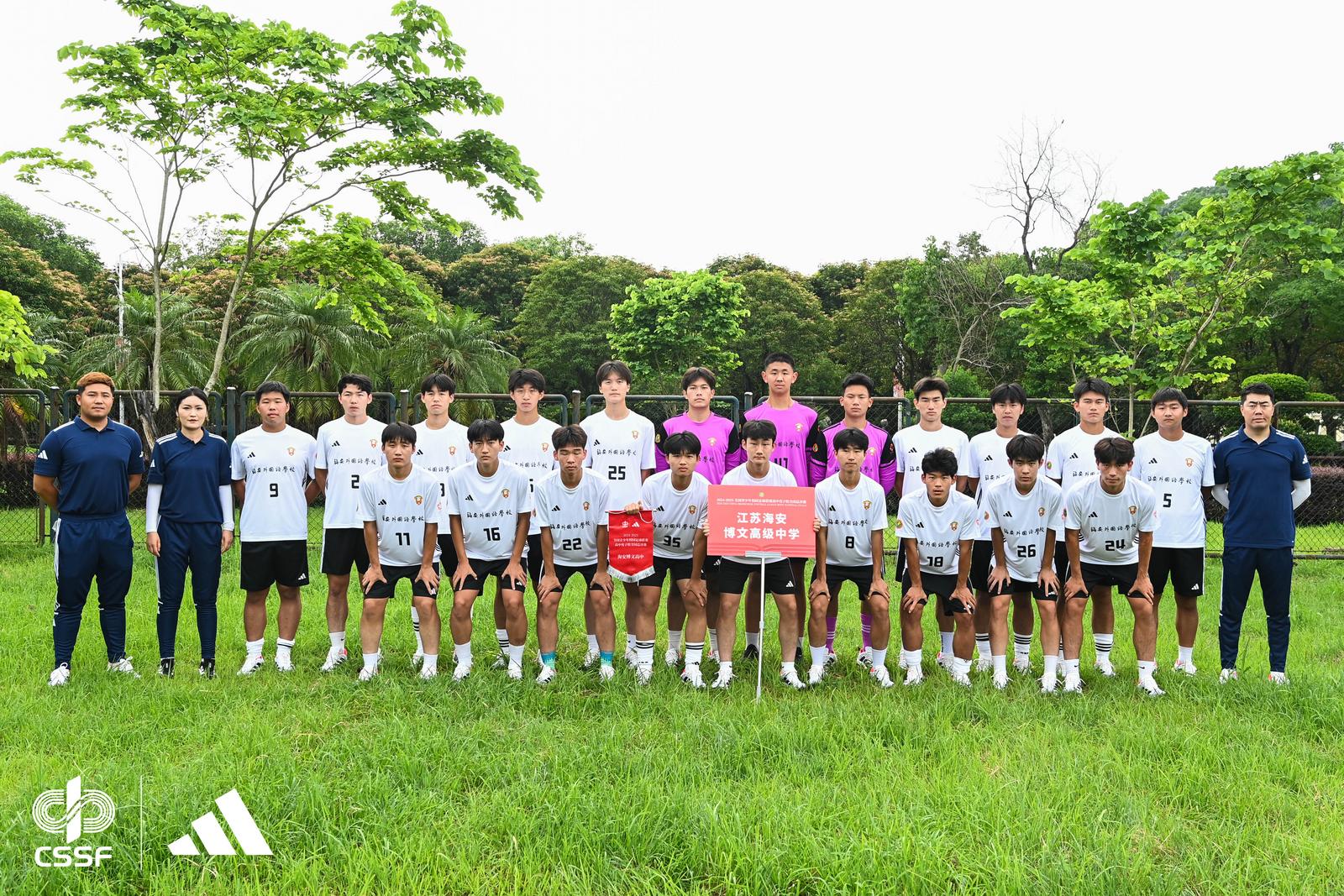 海安外国语学校是全国青少年校园足球特色学校。海安博文高级中学足球队于2022年成立,全队现有球员26人、教练3人。自2023年起,学校与国际知名的本菲卡足球俱乐部签署合作协议,引入专业教练团队、共享青训优质资源,构建起“校—俱—职”贯通培养机制,助力这支初出茅庐的足球新军一路成长,成为站上全国赛场的江苏唯一代表。
