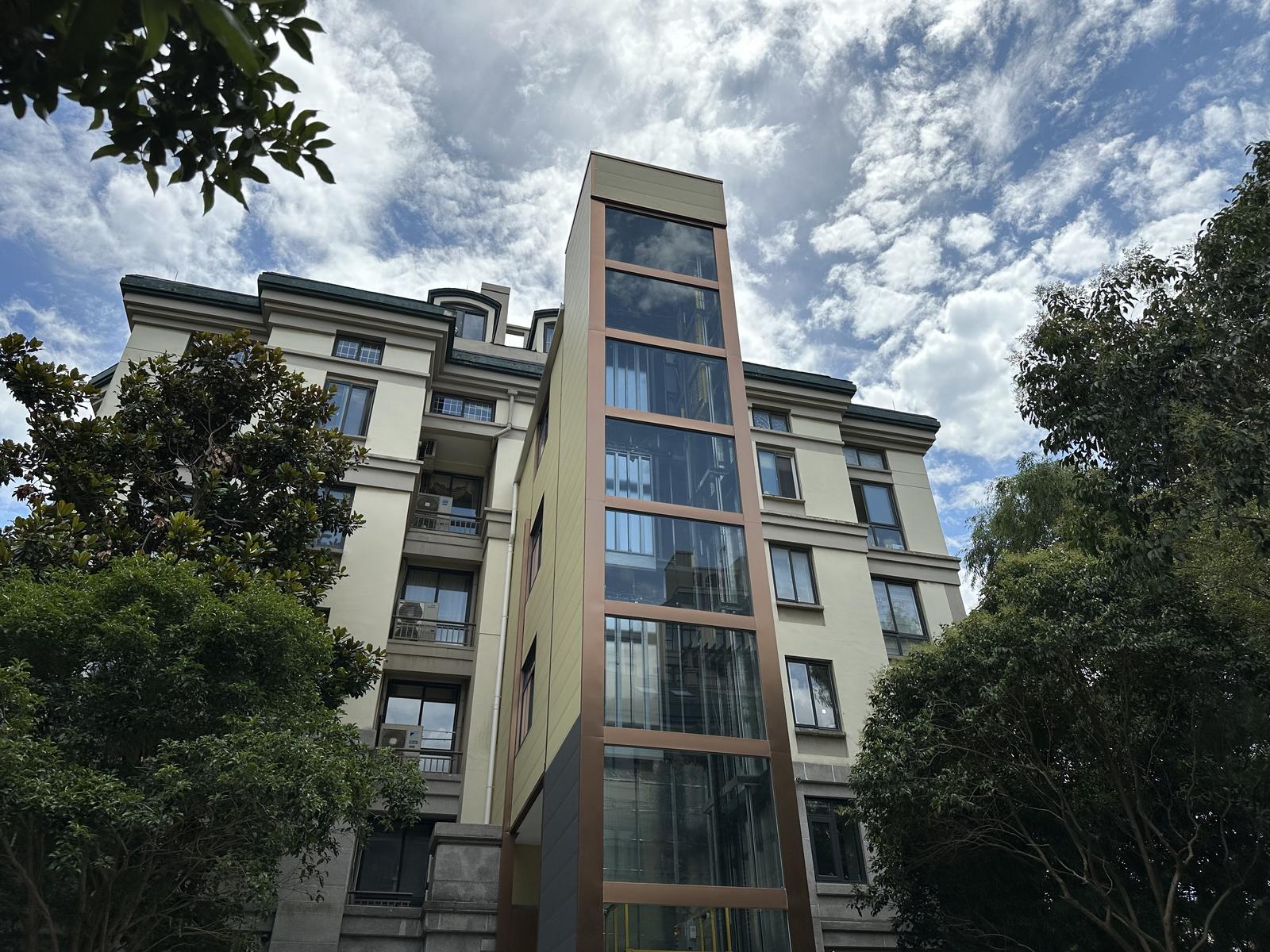 漂亮的电梯以同色调与原有五层楼幢融为一体,十分时尚,一直以来吸引了不少居民前来察看,为有意愿加装电梯的业主提供了一个生动的“模板”。