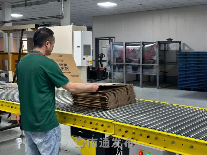 南通艾嘉包装科技有限公司是川姜镇的本土企业,近年来,在政府的指导下,投入近亿元进行智能化技改,实现黑灯生产、5G物联、无人仓储、自助发运。目前,公司已建成两条高速智能纸箱联动生产线、1条蜂窝纸板生产线,可日产成品纸箱20万个、纸板超60万平方米。2024年完成销售额2.2亿元,今年预计实现销售额3亿元。