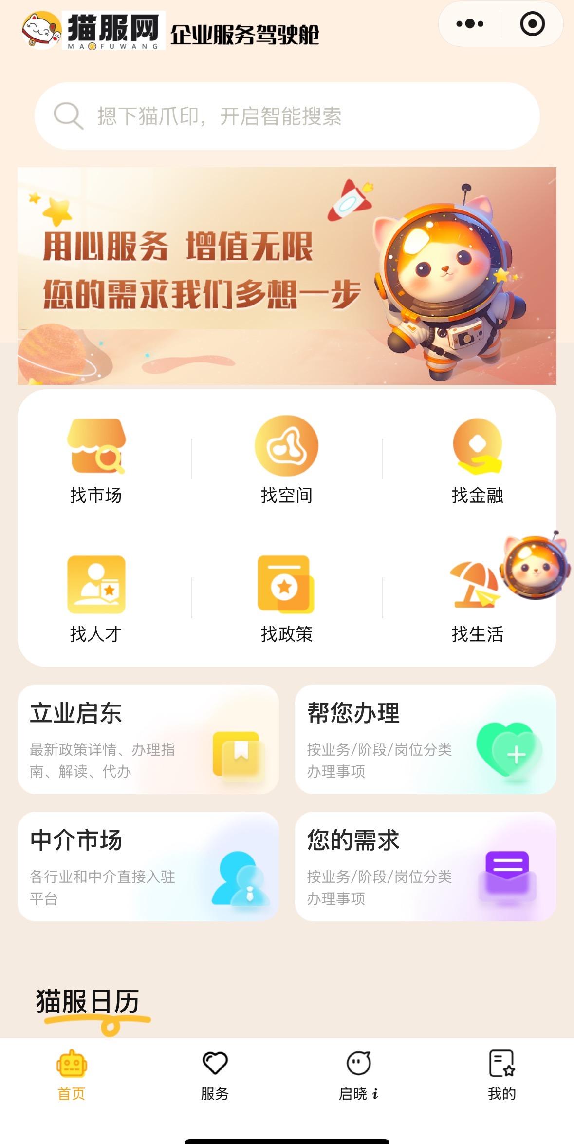 启东市数据局18日消息,集找政策、找市场、找空间、找金融、找生活、找人才等六大核心功能的“猫服网”微信小程序已正式上线。小程序整合人才、科技、工信、商务、金融等多部门资源,汇聚海量信息,为企业提供全方位、一站式贴心服务。