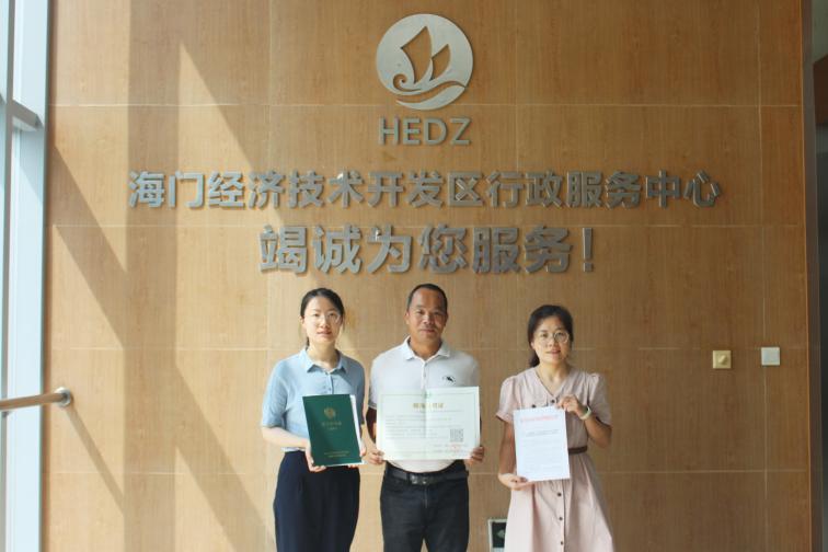 “一次性拿到批复和许可证,非常高效。这让我们对在海门发展更有信心!”南通朝粲五金科技有限公司负责人张德清高兴地说。17日,海门生态环境局、海门开发区管理委员会向该企业同步颁发建设项目环境影响评价批复、排污许可证、排污权交易凭证,该企业成为海门区2025年首个通过“两证联办”模式完成审批的企业。