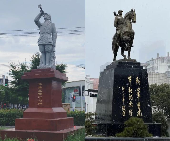 位于建军路上的新四军重建军部纪念塔,民间俗称“大铜马”。1984年,昔日的新四军挺进纵队司令员管文蔚建议,设立一座新四军战士的形象雕塑,让新四军革命精神更直观地融入城市生活。于是,这座高4米、长3.8米、重3250公斤的“大铜马”诞生了。马头面向东方,既寓意“新四军东进”的历史,又契合“我们的队伍向太阳”的立意。
