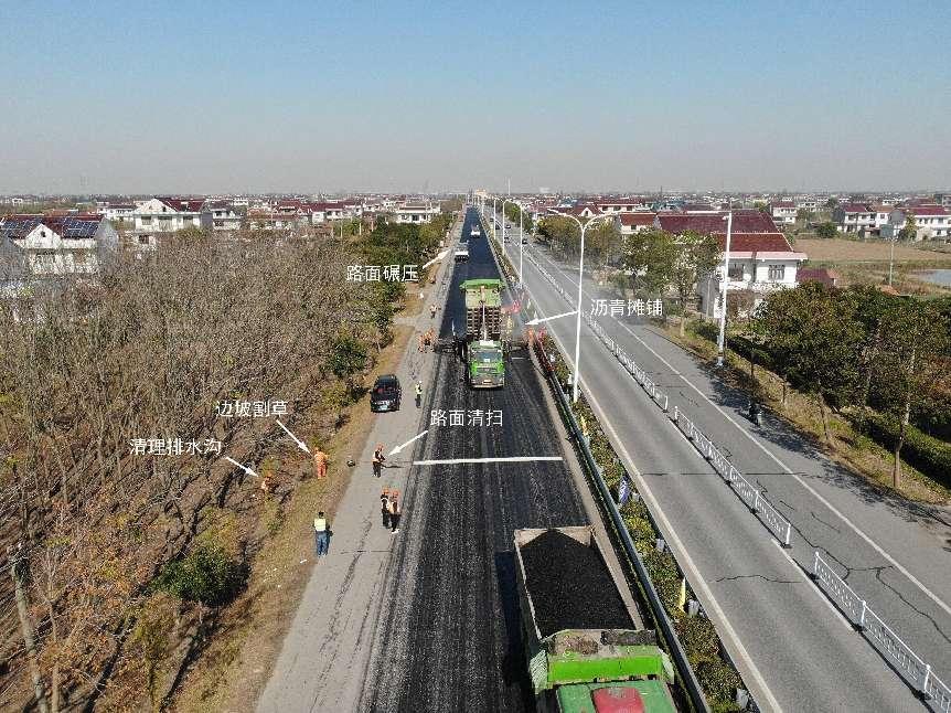 “预防+修复”探索“最优解”。今年,海门公路部门通过资源最优配置和施工精准把控,破解施工难题,提升养护质效。以G228长周期养护工程、S222大中修工程为实践样本,将日常养护与大中修项目深度融合。在推进路面病害治理的同时,同步开展绿化修剪、排水沟整治、涵洞疏通、边坡整改等附属工程,实现“修一条路、整一路环境、提升一路品质”的综合目标。这种“主附协同、一次到位”的集约化作业模式,显著减少了重复施工造成的交通干扰,并有效避免了以往“小修小补找零散队伍”的资源浪费。实践表明,同步施工可提升机械利用率30%,协同作业效率较以往提高25%。