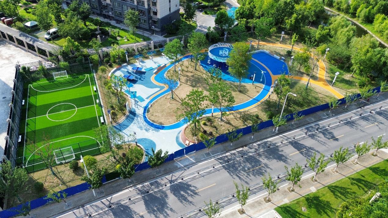 天通路体育公园以“全民运动”为核心,规划有一个三人制足球场、六套智能化健身设施、一张乒乓球桌等多种运动空间。该体育公园与新苑小区仅一墙之隔,为居民散步、锻炼提供了极大便利。